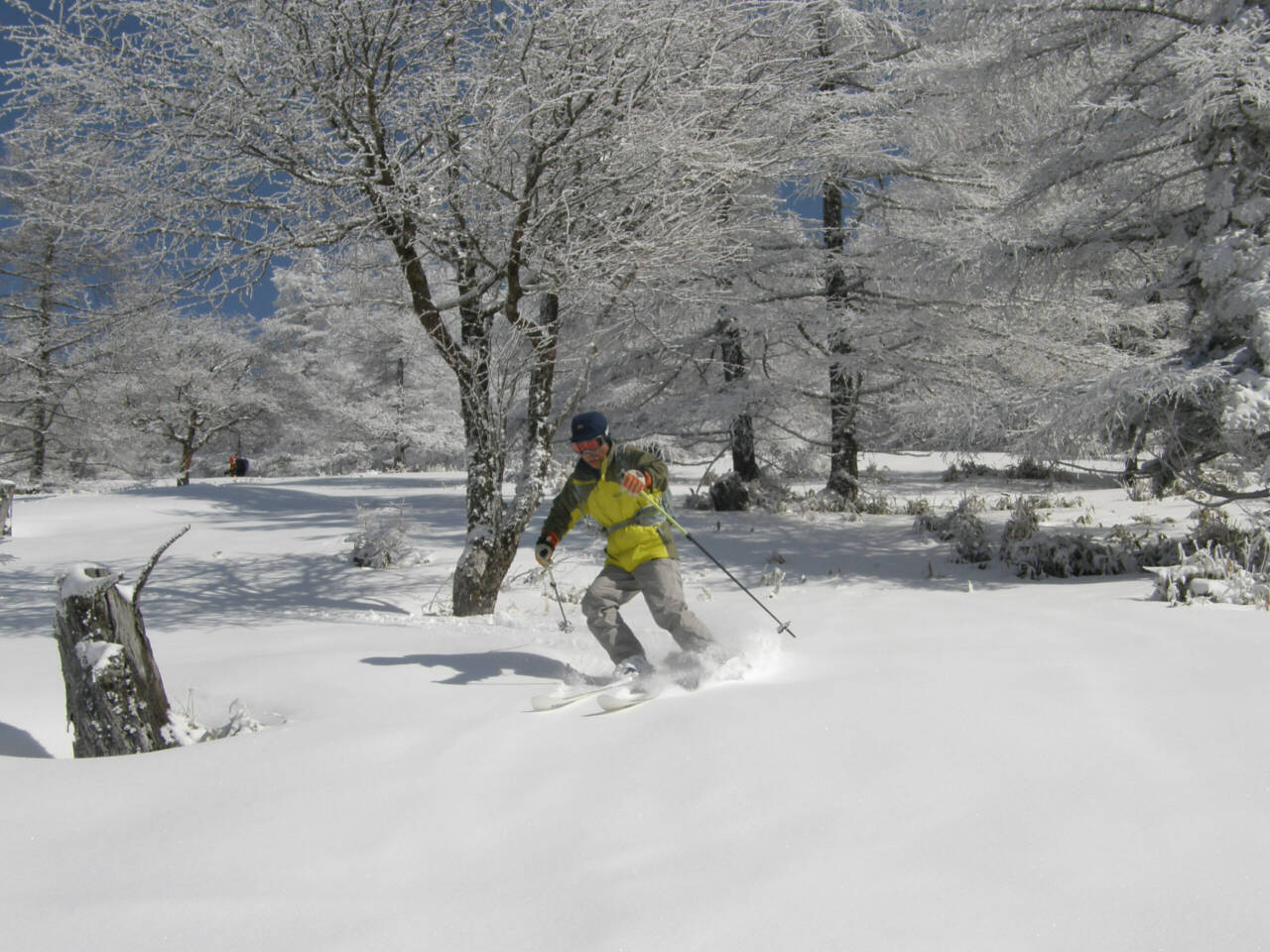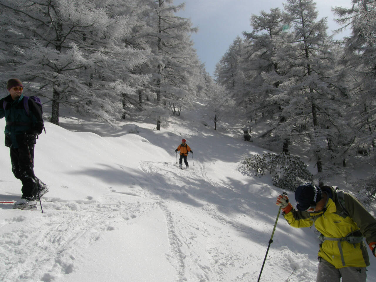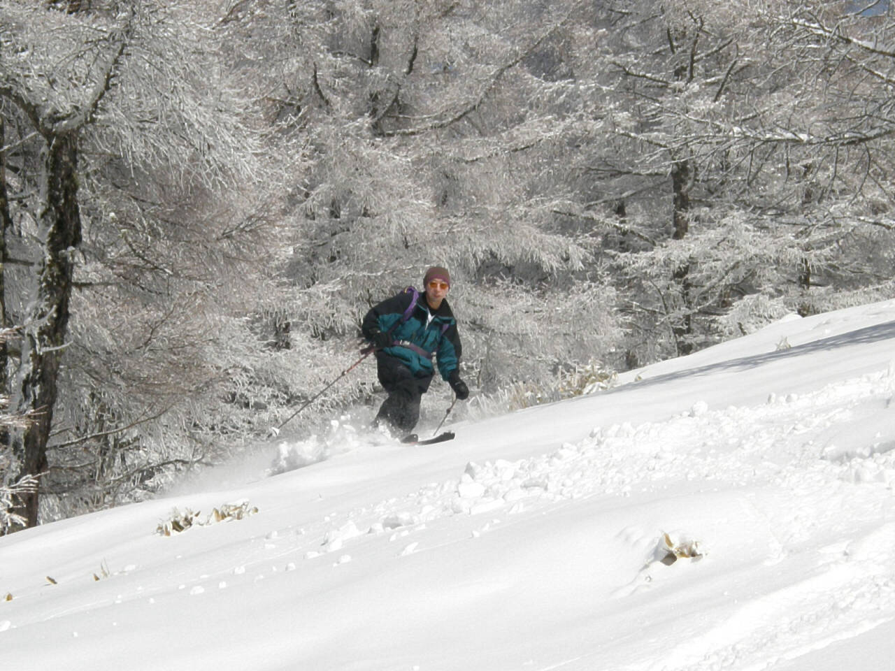 昨日の雪で、笹もずいぶん隠れてくれました! それにしても昨日と大違い! 五辻の大雪原! ここは入り込んでくる人はほとんどいません! 僕らのトレース意外は全くなし!です。 樹林帯を抜けてようやく本日の、メイン! 日向木場の斜面です。 ここも昨年を思えば良い感じです! 今年は気持よく滑れてホッとしました(笑 来シーズンはどうだろう? 温暖化して欲しくないなぁ・・・ お昼から、気温が上がってきました。 ちょっと遅かったら、シケッた雪を滑るところでした。 間一髪? この後のんびりロープウェイの山麓駅まで滑って、今回も無事終了です。 いつもの終了間際の斜面は残念ながら、雪が少なくて、楽しめなかったけど(笑 スキーを脱ぐ羽目にはならずに済んだのはラッキーでした。 PR