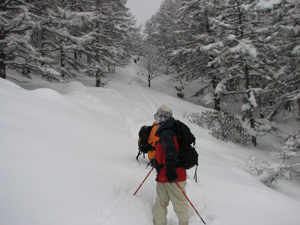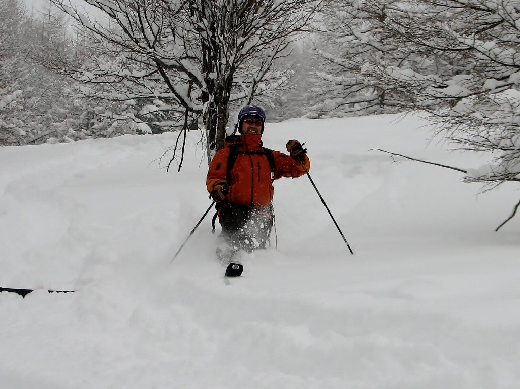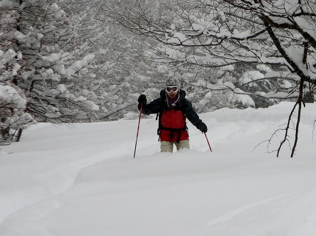 数日前まで雪が無くて、どうしよう・・・って思ってたぐらいなのに(笑 転ぶと埋まるぐらいに降ってます! 初日はゲレンデレッスンですが・・・ どんどん降り積もる雪のおかげで、オフピステ講習?となってます。 フラットなところはどこにも無い! 明日のツアーには十分なほど、およそゲレンデらしくないコンディション(笑 山を滑るにはいい感じのコンディションでレッスンできて良かった! 翌日のツアー ロープウェイ山頂駅で出発準備中 昨日同様降ってます!大量に! ロケーションは残念ですが、まぁ風も無く、しんしんと雪の降る景色ってのも悪くないですよ さすがに深いです。大体ヒザ上ぐらいのパウダーは、ターンしすぎると止まっちゃうぐらい(笑 毎年お楽しみの日向木場の斜面なんだけど・・・・ 雪が深すぎて、出来るだけターンしないように行かないと、スキーが止まっちゃう(笑 そんだけイキナリ降って積もってるって事! ここまでは例年通りのペースで順調に着てたんだけど・・・ 実はこの後に・・・・ いつもならここから1時間半ぐらいで帰れるんだけど・・・今回あまりの積雪で、下り坂でもラッセルする事に! ラッセルのおかげで、ペースが上がらずいつもの倍以上の時間を費やす事となりました。 久しぶりにラッセル地獄を味わっちゃいました(悲 この季節にしては、イキナリの積雪だったので今までの経験則を上回る状況が待ち受けてました。 自然はあなどれませんねぇ。 PR
