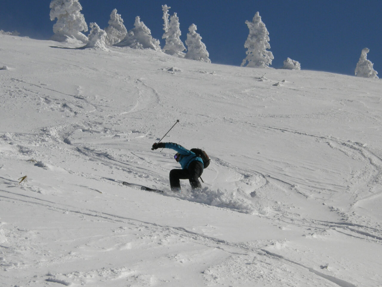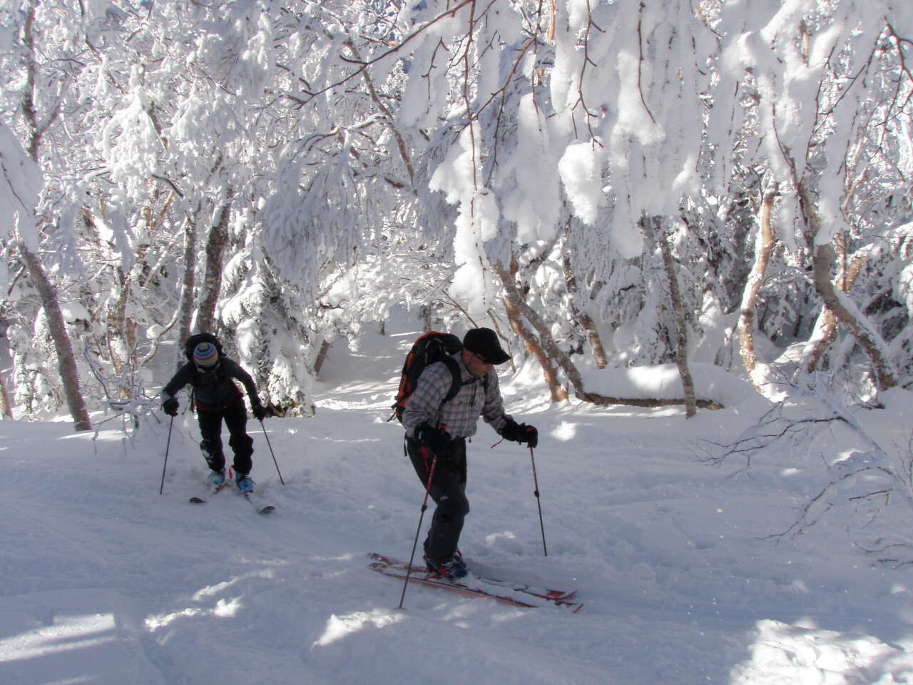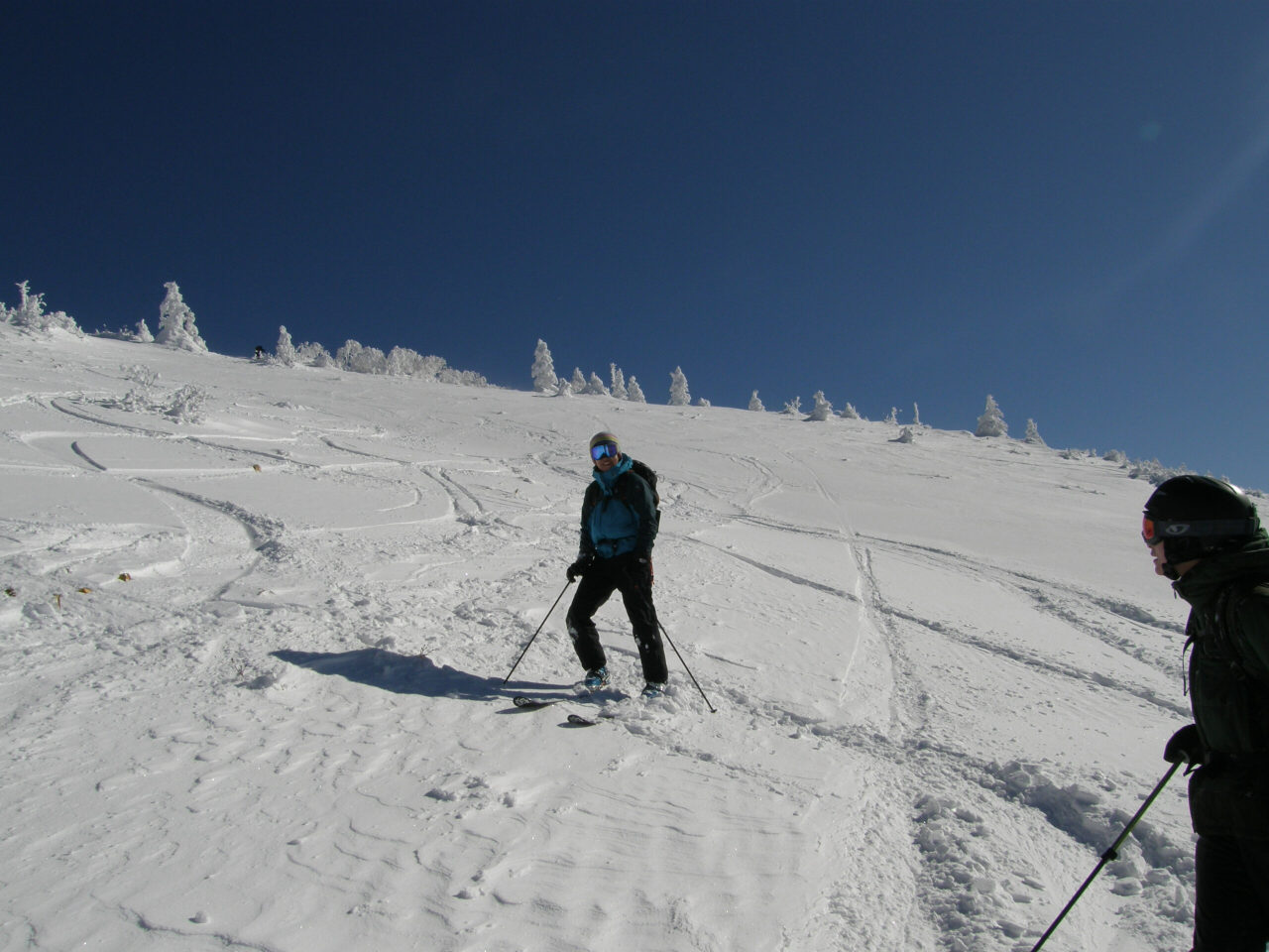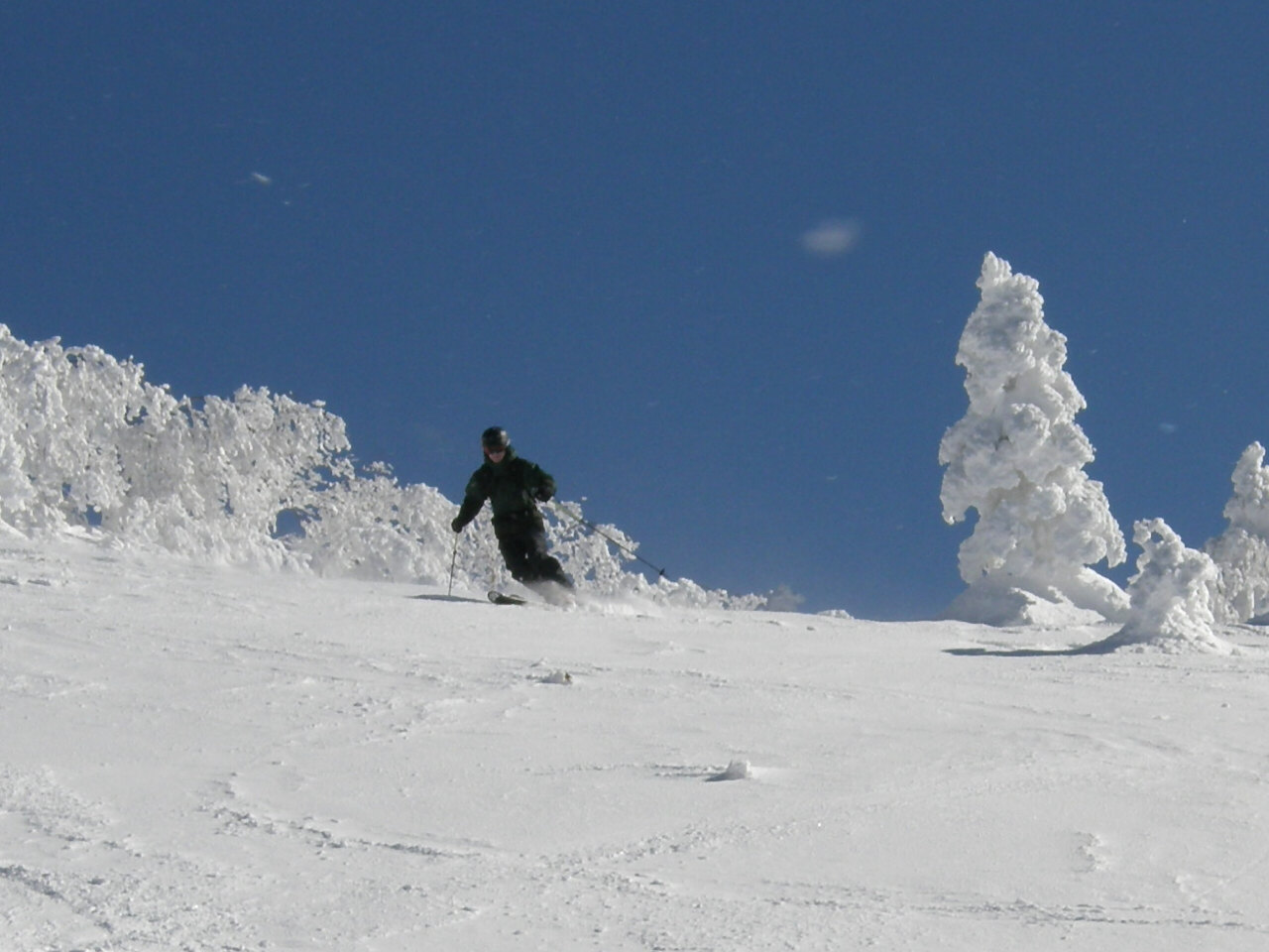 青空と霧氷 モンスターに成長するには木が細すぎるかな? 今回も?汗だくで登って滑る、楽しいツアーでした(笑 スキー場を後に登り始めて、30分ぐらい ゲレンデがはるか下に見えてます。 これから、ゆっくり登って、1時間半位で山頂です。 それにしても暑い! 平日とは違って、人がいます(笑 牧場から、登って降りてくる登山者もいます。 山頂は未だ見えないけど、のんびり登っていきます。 もうすぐ山頂! この樹林帯を抜けると、すぐに山頂が見えます。 で!山頂です。 抜けるような・・・というか抜けちゃってる青空 でも・・・風が強くて、写真を撮ったら、さっきの樹林帯に戻ってお昼ご飯です。 ご飯を食べたら、お楽しみタイム! 三者三様のスキー 根子岳の斜面は全体的にj緩やかな斜面が続くのでお好みの斜面を選んで滑ります。 尾根筋と沢筋を交えながら滑ると、斜面変化が楽しめます。 山頂直下は風にたたかれて、クラストしてるところも結構あって、ちょっとてこずったけど(笑 ゲレンデでは味わえない広大な斜面! 楽しく滑って、ゲレンデに滑り込みます。 下から山頂を見上げると、滑ったなぁ! って実感湧きますね(笑 PR