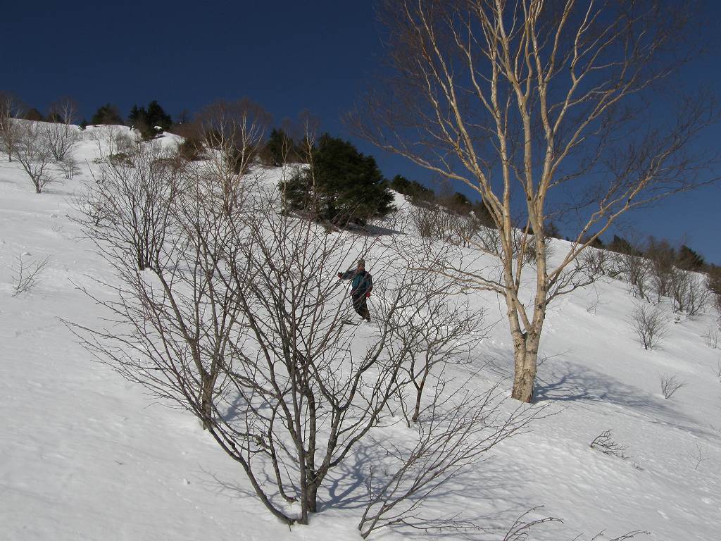 お客さんも昨日に引き続き(笑 今回はアサイチで行動できたので、早い時間から行動できました。 今日はたっぷり時間をかけて登ります。 でも・・・気が付いたら1時間半で登っちゃいました! 2時間はかけるつもりだったので(笑 最近人気が無いのかなぁ・・・ 以前よりヒトケが無いのはどうしてだろう? まぁ山で人があふれちゃうのもどうかと思うけど・・・・ ピークの陰で風をよけて大休止してから滑ります。 いつもなら登り返してもう一本!とか考えるけど(笑 雪の状態もよくも無いし、お客さんも登り返す気にならない感じだったので・・・ そのままボトムまで滑り降りちゃいます。 この沢はいつもいい感じの雪質なので、毎回楽しく滑れちゃいます! アサイチで行動開始したので・・・ お昼前には降りきっちゃいました(笑 この後はのんびりゲレンデに戻って、お昼には終了です。 おつかれさまでしたあ~ PR