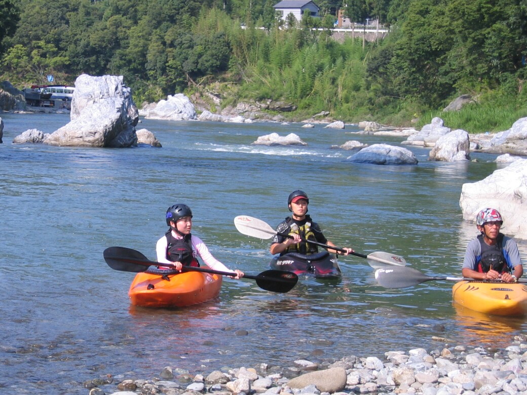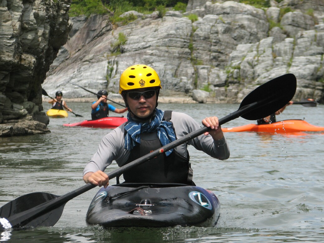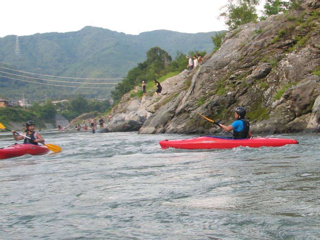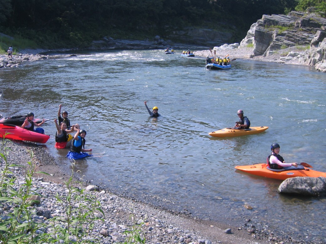 で、この日は長瀞に1年で、一番たくさんの人が押し寄せてきます。ウェイブグライドにもやっぱりたくさんの方に来ていただきました。 お祭りのために作られた、河原からスタート! 今日も長瀞は、強烈な暑さ!熱中症にかかりそうです。 午前中は、岩畳で練習します。 このほか川を下る為の基本練習・・・ 沈脱もやります(笑 いよいよ川下りのスタート! こまめに休憩を取りながら、川を下っていきます。 ゆっくり下って、午後4時半に全員、無事に川を下りきりました。 皆さんお疲れ様でした。 夜は、長瀞ベースから花火を見物! 人込みを避けて、のんびり見ます! PR