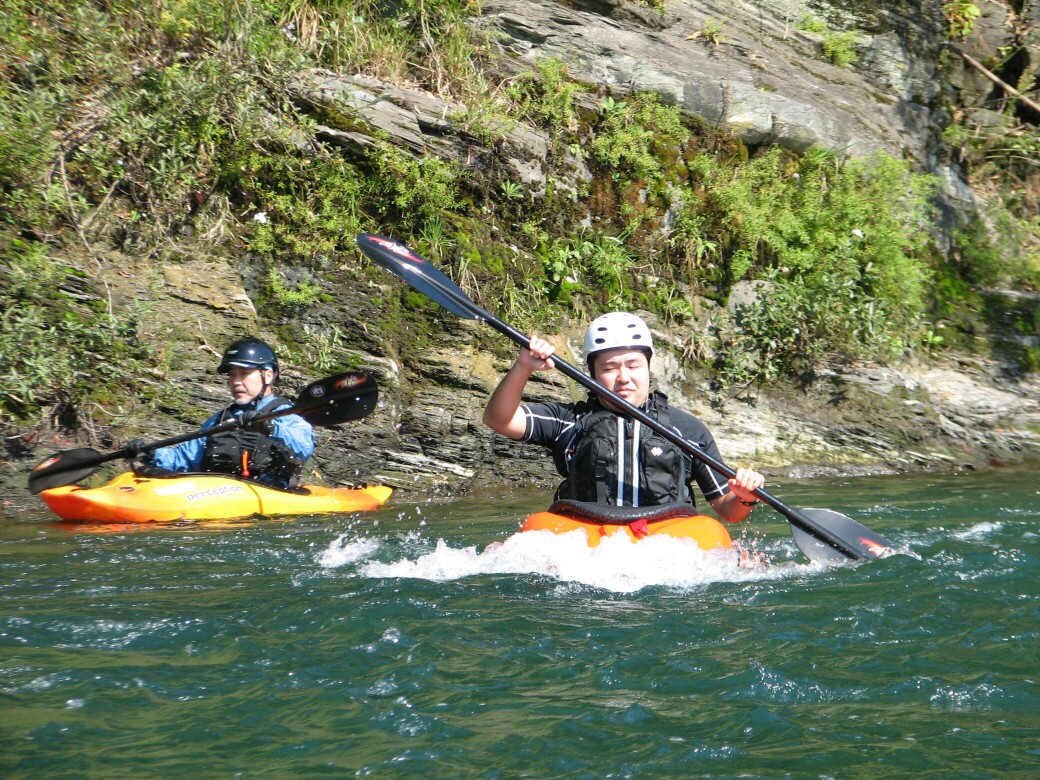 今日は1日かけて長瀞を下ります。 まずは、親鼻の河原からスタート。 河原では、水着モデルの撮影とかしてて(こんな時期に!)注目度満点でした(笑 まずは、30分ほどウォームUPでターンの練習。 この辺りは、いつもの講習とあんまり変わりないですが この後鉄橋下、勢子(セイゴ)と続けて瀬を下ります。 で!小滝の瀬、核心部手前で一旦エディイン ここから一人づつ下ります。 小滝の瀬は、全員無事クリア この後は瀞場をのんびり下ってお昼です。 午後は、午前より長い距離を下るので、あんまりスポットで遊べないんだけど、それでも波を見つければ入って遊びます。 そして、最後に待ち構える最後のセクション 旧S字の瀬以前はエスケープルートでたいしたこと無かったんだけど、度重なる増水で去年から新しくホールが生まれてます。初めて下ると、ちょっとドキドキ? ホールに突っ込むと? 目の前は見えなくなりますねぇ(笑 ここでも全員写真を撮ろうと思ってたんだけど、二人目まで写真を撮ったところで、カメラのバッテリー切れ(悲 ごめんなさいっ 午後3時半に全員無事ダウンリバー終了!となりました。 参加していただいた皆様、ありがとうございました。また次回もお待ちしてますよぉ PR