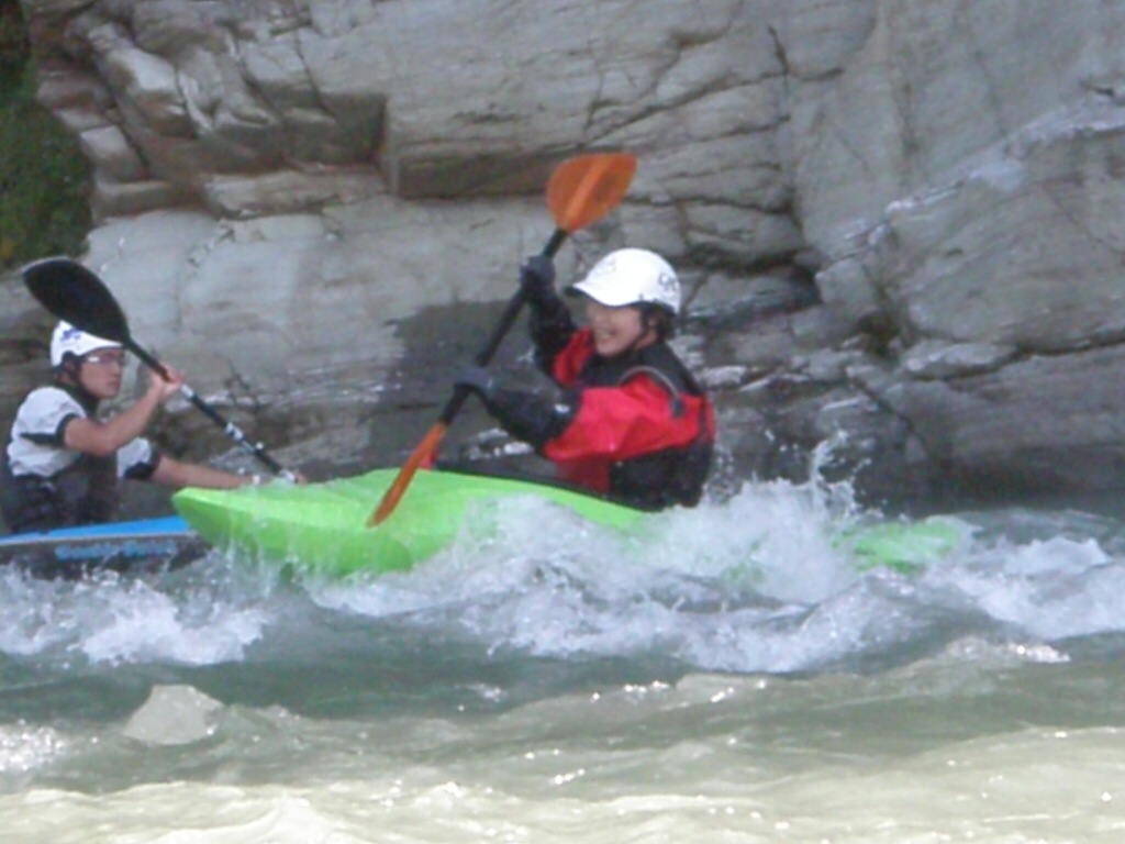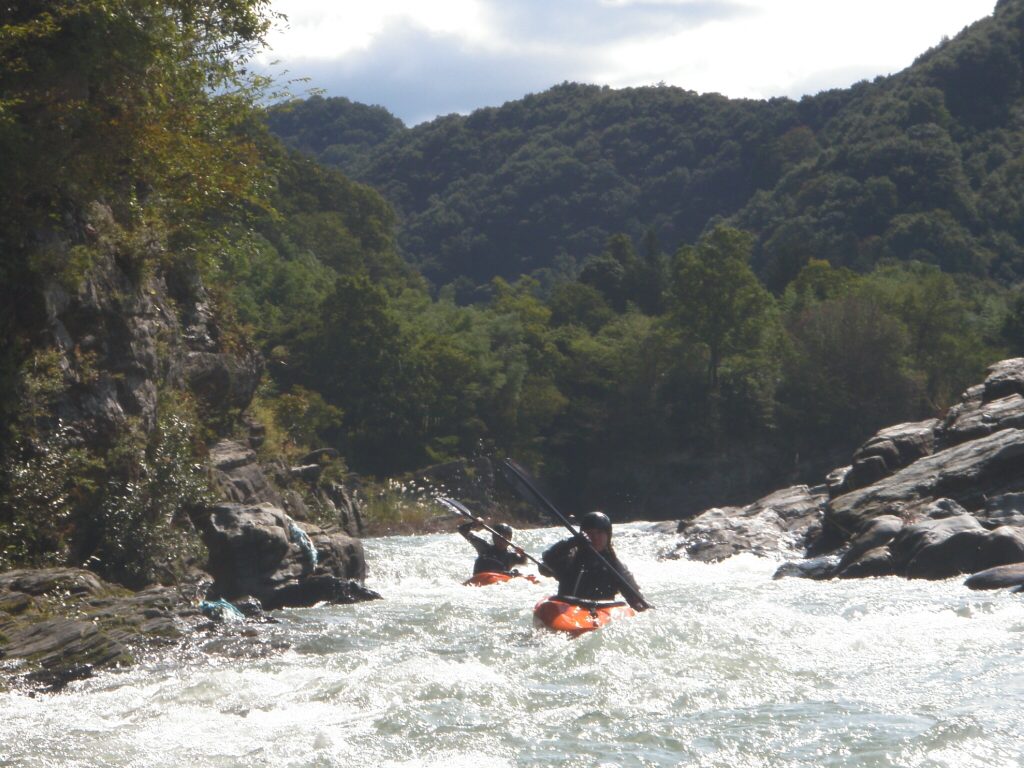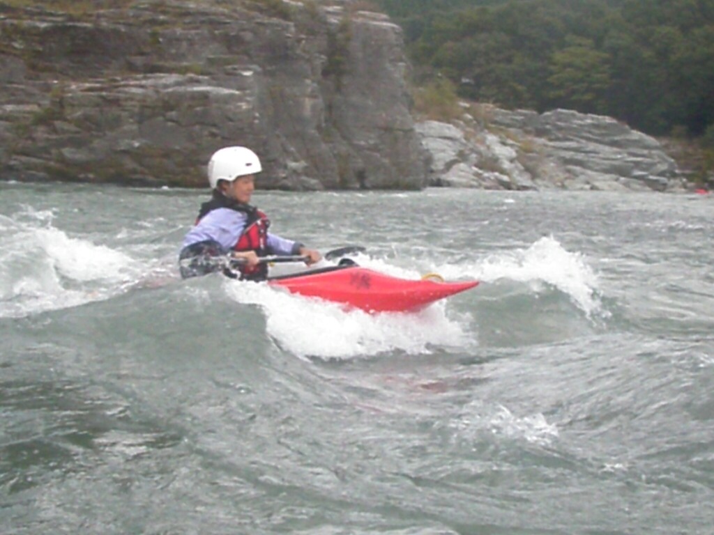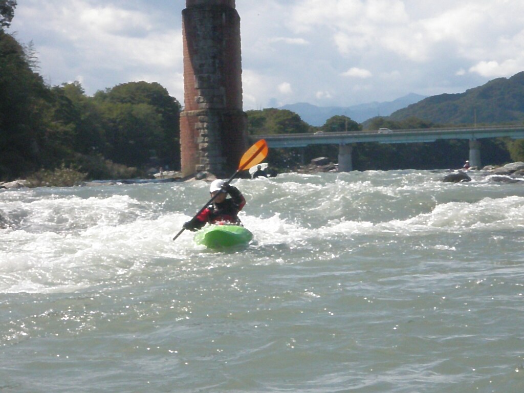 × [PR]上記の広告は3ヶ月以上新規記事投稿のないブログに表示されています。新しい記事を書く事で広告が消えます。 台風18号のおかげで、一時400t/sまで増水したものの、なんとか40t/sまで落ち着いてくれて、無事長瀞ダウンリバーが行えました。 10月に入ってから、不安定な天気が続いてたので、久しぶりの青空とたっぷりの水量で、楽しいダウンリバーとなりました。 今日は親鼻大橋からのスタートなので、鉄橋下のシュートも下ります。 結構高低差と流速があるので、ちょっとしたウォータースライダーです。 シュートを下りきると、ブレーキングウェーブが! どかーん!と突き抜けます。 もう楽しくって(笑 小滝の瀬はバイパス組と本流組に分かれて下ります。 バイパスも結構楽しい! 小滝のメインウェーブ!一気に加速していきます。 メインウェーブを抜けてからも今日はまだまだでかい波が待ってます。 アドレナリン出てますよ! 何度か危ないぐらい傾いてギリでセーフ! 二股の瀬の後で。 サーフスポットもいろいろあります。 蓬莱島横のスポット。ここはめったに乗れないポイントです キャンプ場のウェーブも絶好調! 洗濯機ホール上のウェーブもはまってました! たっぷり漕いで、楽しく遊んだ長瀞ダウンリバー。 今回もみんなの笑顔で終わりました。 PR