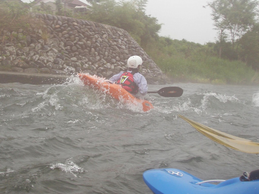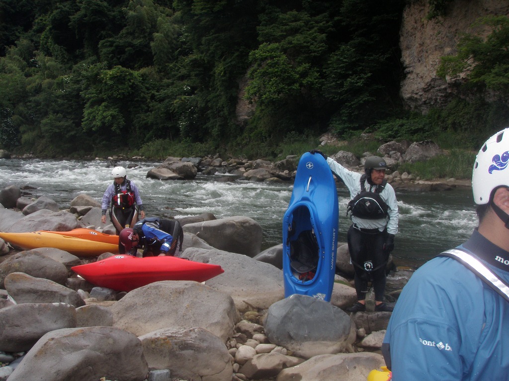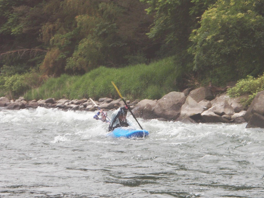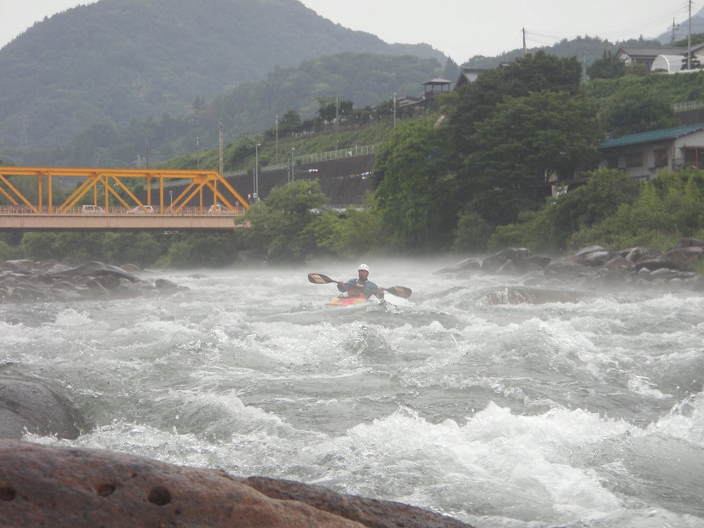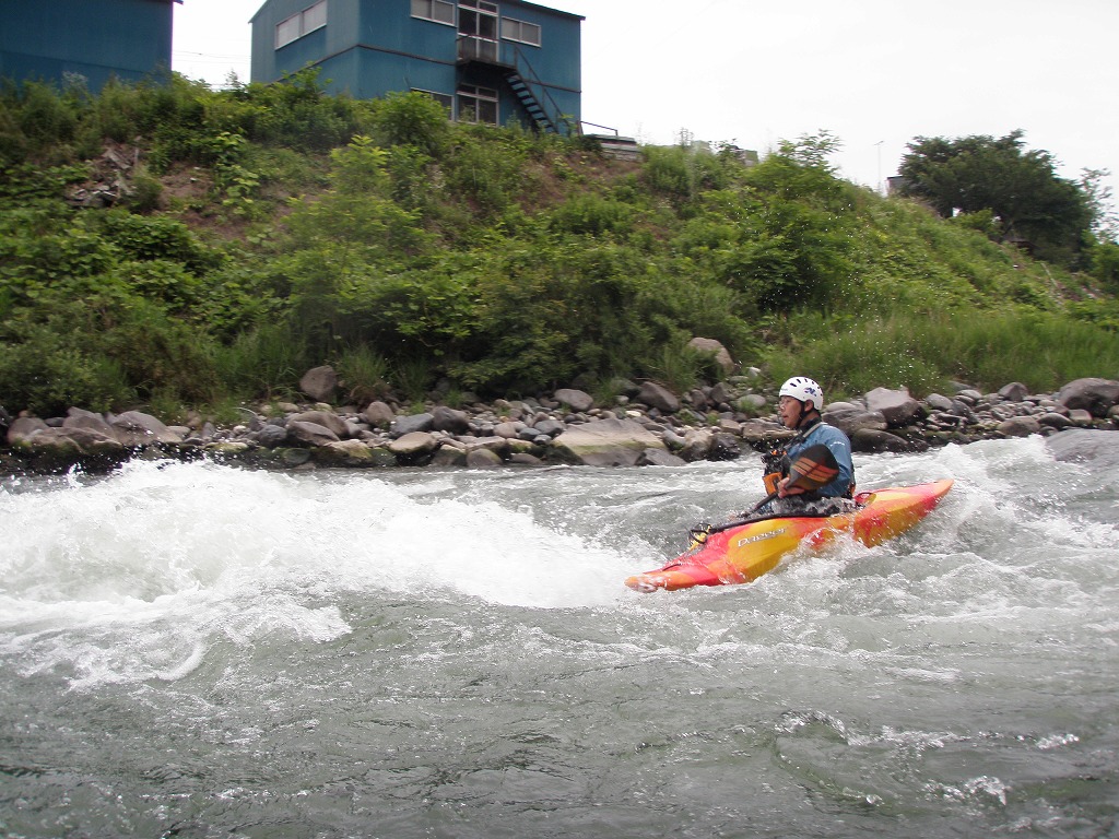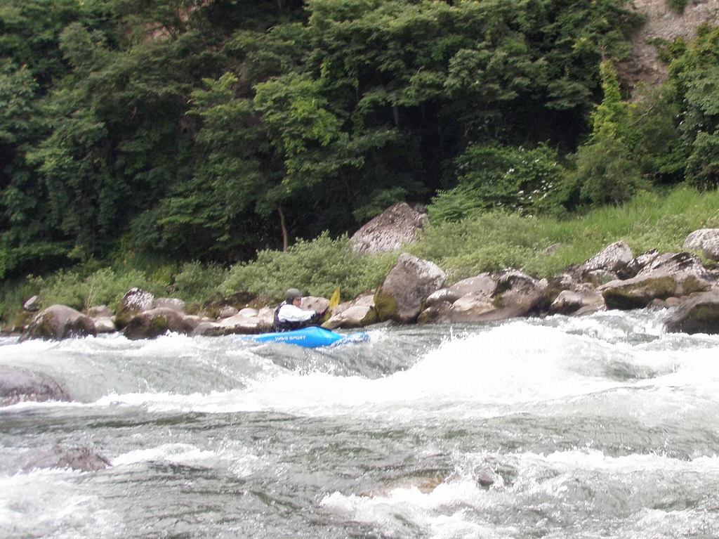おまけに鮎つりが入ってるし!(確か明日解禁なんだけど?) 今日は、午前は月夜野から岩本まで! 昨日一人で下った時は1時間位だったので、それを目安にしてたんだけど・・・あまりの水の減りっぷりに、ツアータイムに支障をきたす事になるとは、この時は知る由も無かったのでした(笑 まずは適度な波を乗り越えていきます。 但し昨日の下見があてにならないぐらい、通れるるラインが変わってきちゃってます(苦 そして今日のメイン! トネ食ホール! コースのど真ん中にぽっかり穴が開いてます。 昨日はホールになりかけぐらいだったんだけど、今日は完全にホールです! 出来るだけトラブルは回避したいので(保守的です) ホールを避けていくコースを下見します。 全員見事にクリア! さすがです! 僕が見本で下った時は、つい言ってたコースと違うところを通っちゃったのに(笑 で!この後サーフィンしてあそんでて、ふと時間をチェックしたら、え?もうお昼! 予定コースはまだ3分の1残ってるのに! モタモタしてたつもりは無かったんだけど、水量が落ちてる分だけ流速も遅くなってて、時間がかかっちゃってた事に気がつきませんでした! それなら、午後のコースを変更しましょうか?ってみんなに聞いたら、ガンガン行きましょう!って(笑 残りを30分で下っちゃいました! ちょっともったいなかったかなぁ・・・ 午後は上流に移動して、上牧ダムからスタートです。 本来ならここより上からスタート予定だったんですけどねぇ・・・ 上流を見たら、下っても楽しくないよねぇ・・・ って事で(笑 なんだか昨日の下見がほとんど参考にならないぐらい水が減っちゃってます! 岩!テトラ!次々よけないといけません(悲 こんなに少ない水量で初めて下ったので、この後ライン取りとみんなの安全確認で、写真は全く取れませんでした。 なんか、クリークボーティングしてるみたい! 岩に乗る!滑る!落ちる!だもの(笑 そして、午後のメイン! いつもなら馬鹿でかいウェーブが立ってるハズ・・・なんですが・・・ ここは今までスカウティングした事無かったんだけど、昨日の下見のときに水の中の岩が気になってたので、見てみる事に! パワーは無さそうなんだけど、瀬が長いのと やっぱり岩が出てるし・・・ 上から見るのと下るのでは、違ってきます。 下るとこんな感じ(笑 後半、いつもはなんて事無いところに、意表をついた大波が! みんなここはサーフィンに燃えましたねぇ(笑 どうなる事か!と思った渇水ツアー・・・やっぱり十分楽しめちゃうのが利根川です。恐るべし利根川! PR