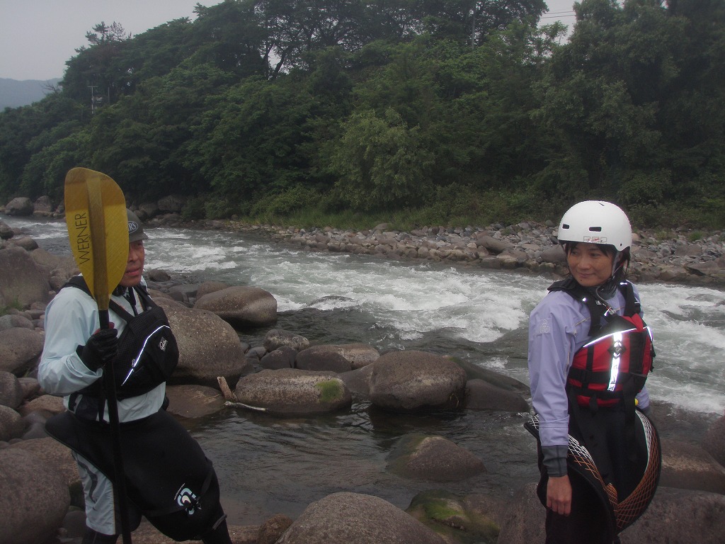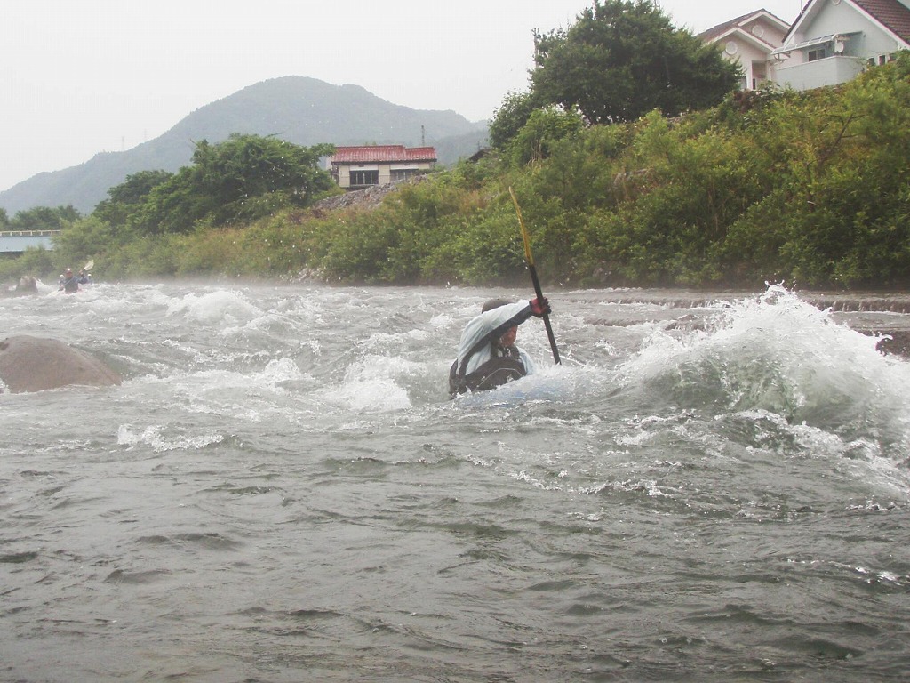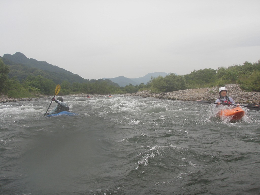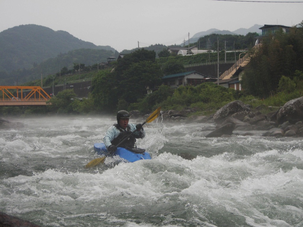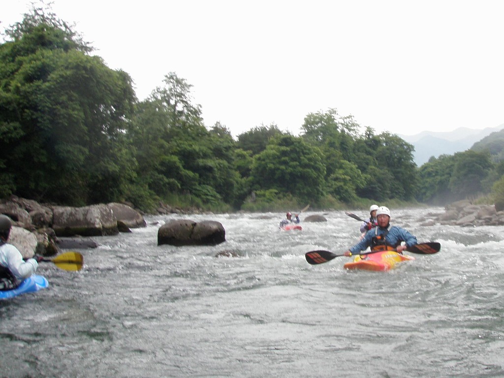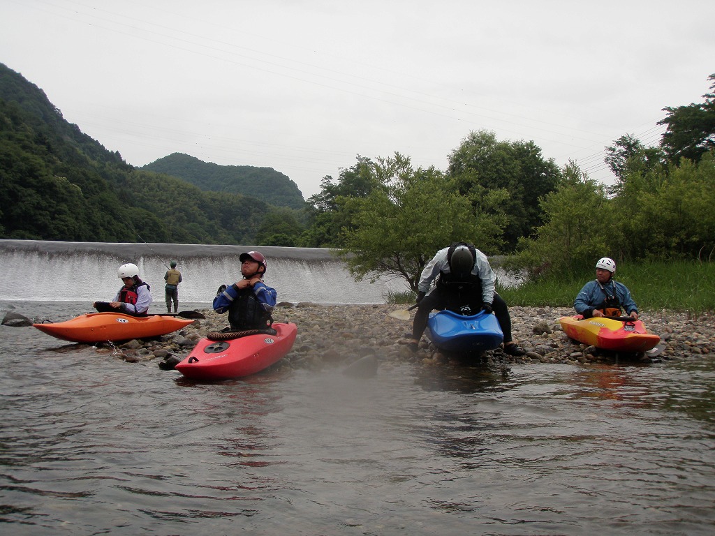 おまけに鮎つりが入ってるし!(確か明日解禁なんだけど?) 今日は、午前は月夜野から岩本まで! 昨日一人で下った時は1時間位だったので、それを目安にしてたんだけど・・・あまりの水の減りっぷりに、ツアータイムに支障をきたす事になるとは、この時は知る由も無かったのでした(笑 まずは適度な波を乗り越えていきます。 但し昨日の下見があてにならないぐらい、通れるるラインが変わってきちゃってます(苦 そして今日のメイン! トネ食ホール! コースのど真ん中にぽっかり穴が開いてます。 昨日はホールになりかけぐらいだったんだけど、今日は完全にホールです! 出来るだけトラブルは回避したいので(保守的です) ホールを避けていくコースを下見します。 全員見事にクリア! さすがです! 僕が見本で下った時は、つい言ってたコースと違うところを通っちゃったのに(笑 で!この後サーフィンしてあそんでて、ふと時間をチェックしたら、え?もうお昼! 予定コースはまだ3分の1残ってるのに! モタモタしてたつもりは無かったんだけど、水量が落ちてる分だけ流速も遅くなってて、時間がかかっちゃってた事に気がつきませんでした! それなら、午後のコースを変更しましょうか?ってみんなに聞いたら、ガンガン行きましょう!って(笑 残りを30分で下っちゃいました! ちょっともったいなかったかなぁ・・・ 午後は上流に移動して、上牧ダムからスタートです。 本来ならここより上からスタート予定だったんですけどねぇ・・・ 上流を見たら、下っても楽しくないよねぇ・・・ って事で(笑 なんだか昨日の下見がほとんど参考にならないぐらい水が減っちゃってます! 岩!テトラ!次々よけないといけません(悲 こんなに少ない水量で初めて下ったので、この後ライン取りとみんなの安全確認で、写真は全く取れませんでした。 なんか、クリークボーティングしてるみたい! 岩に乗る!滑る!落ちる!だもの(笑 そして、午後のメイン! いつもなら馬鹿でかいウェーブが立ってるハズ・・・なんですが・・・ ここは今までスカウティングした事無かったんだけど、昨日の下見のときに水の中の岩が気になってたので、見てみる事に! パワーは無さそうなんだけど、瀬が長いのと やっぱり岩が出てるし・・・ 上から見るのと下るのでは、違ってきます。 下るとこんな感じ(笑 後半、いつもはなんて事無いところに、意表をついた大波が! みんなここはサーフィンに燃えましたねぇ(笑 どうなる事か!と思った渇水ツアー・・・やっぱり十分楽しめちゃうのが利根川です。恐るべし利根川! PR