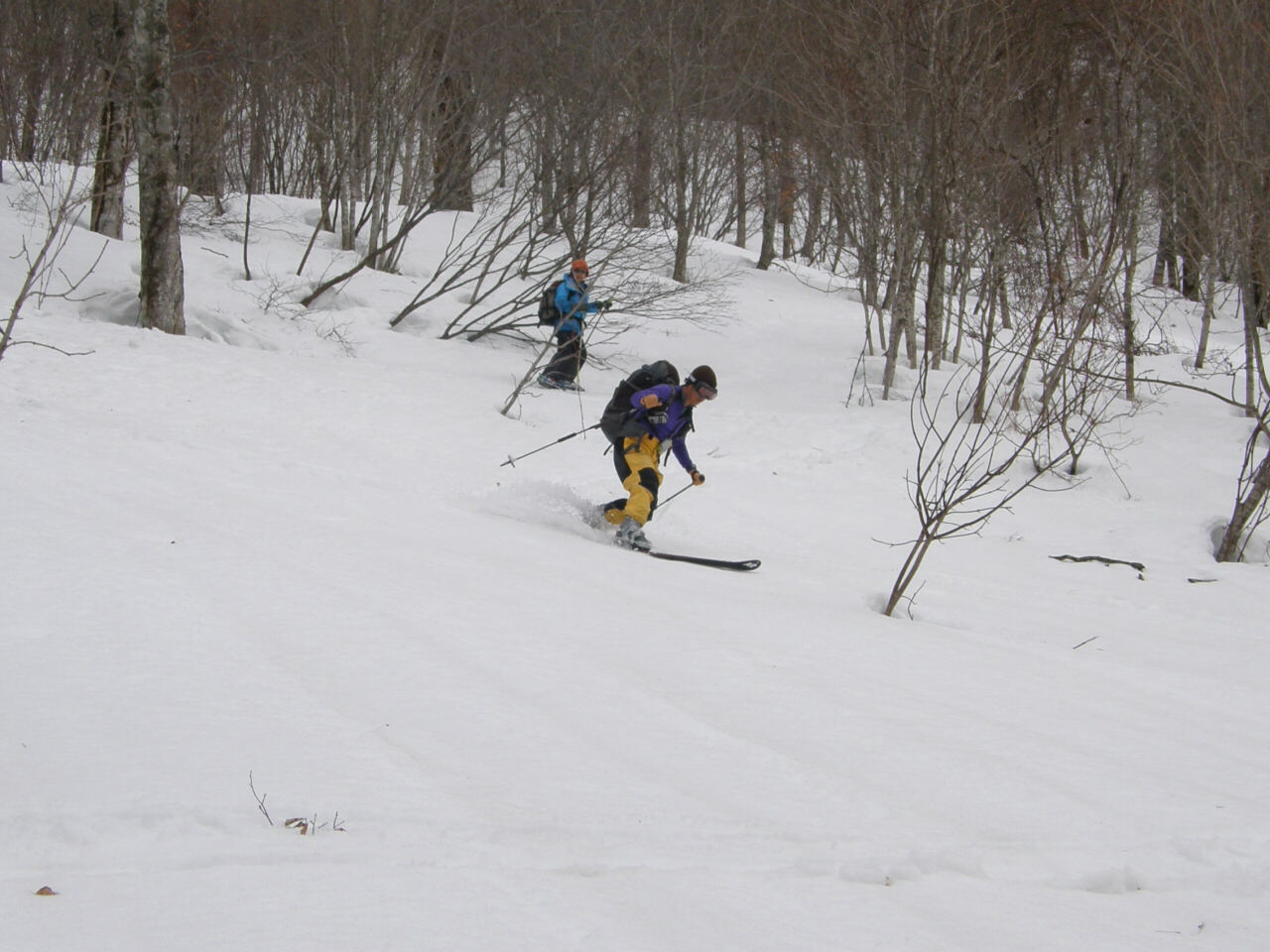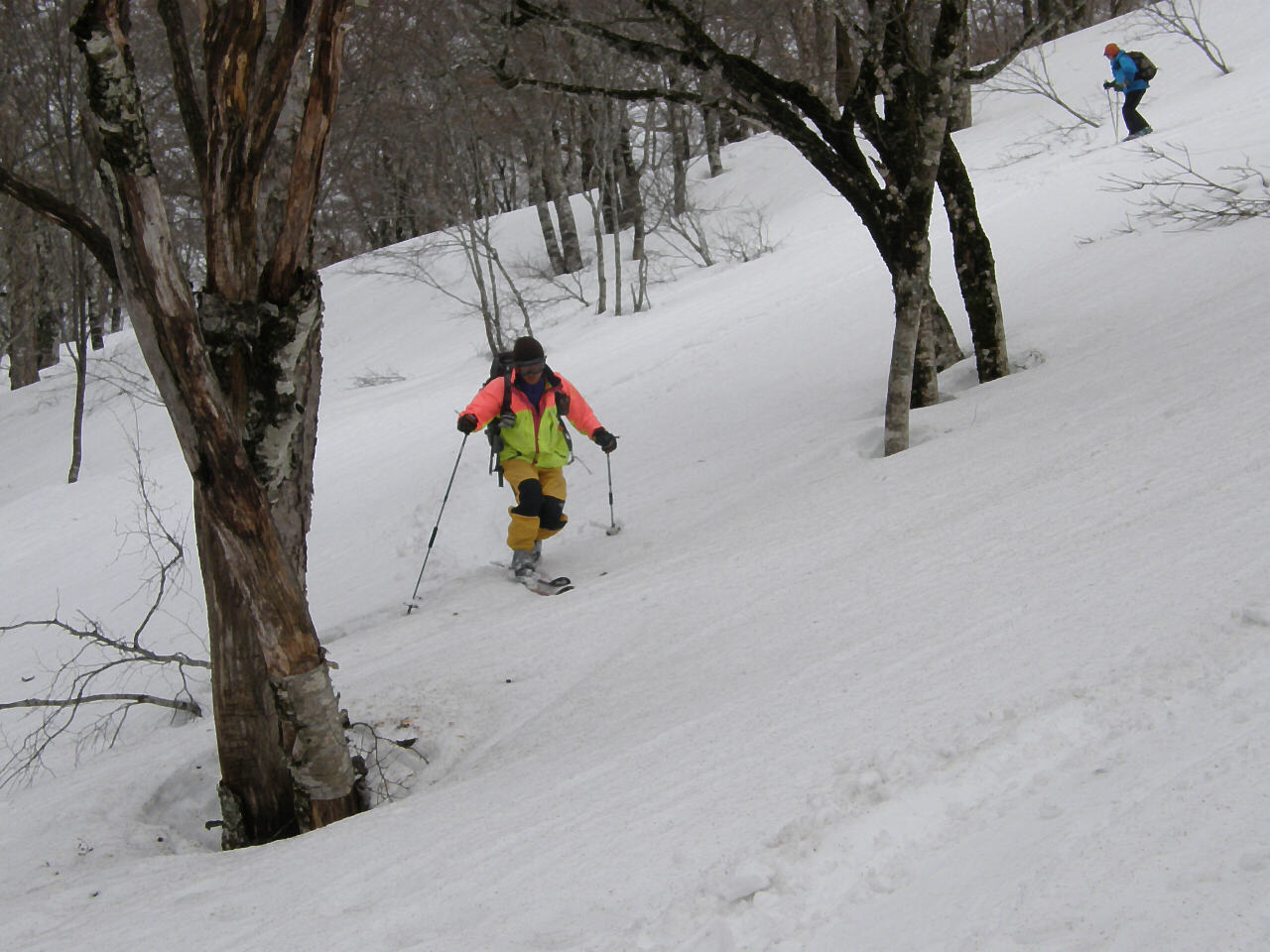 × [PR]上記の広告は3ヶ月以上新規記事投稿のないブログに表示されています。新しい記事を書く事で広告が消えます。 久しぶりの、夜後沢ツアー 天気はもうひとつだけど、時折晴れ間ものぞくし、谷川連峰もよく見える! 鹿俣山から無銘峰へ! 今年はセッピがあんまり出てないので、比較的安心して稜線が歩けます。 無銘峰から水上側がよく見えます。 無銘峰のピークです。 ガスが晴れてくれれば、獅子ヶ鼻と剣が峰が見えるんだけどなぁ・・・ 山頂でお昼を食べてたら、虫を見つけました! お客さんが、孤独だよなぁ・・・って一言 お昼を食べたら、夜後沢へ滑り込みます。 今日の雪は、水分タップリ! スキーは雪に張り付くし、足元取られやすいし・・・ちょっと鍛えられます(笑 気を抜くと?やられます(笑 でも楽しいのがテレマーク! 気が付いたら・・・左ターンの写真だけになっちゃった・・・ 跳ね上がってる雪が湿ってるのがよく判ります! ツアー終盤には空も晴れてきました! 明るい森の中を滑ってゲレンデ下部に向かいます。 今日も無事、怪我も無くツアーが終わります。 PR