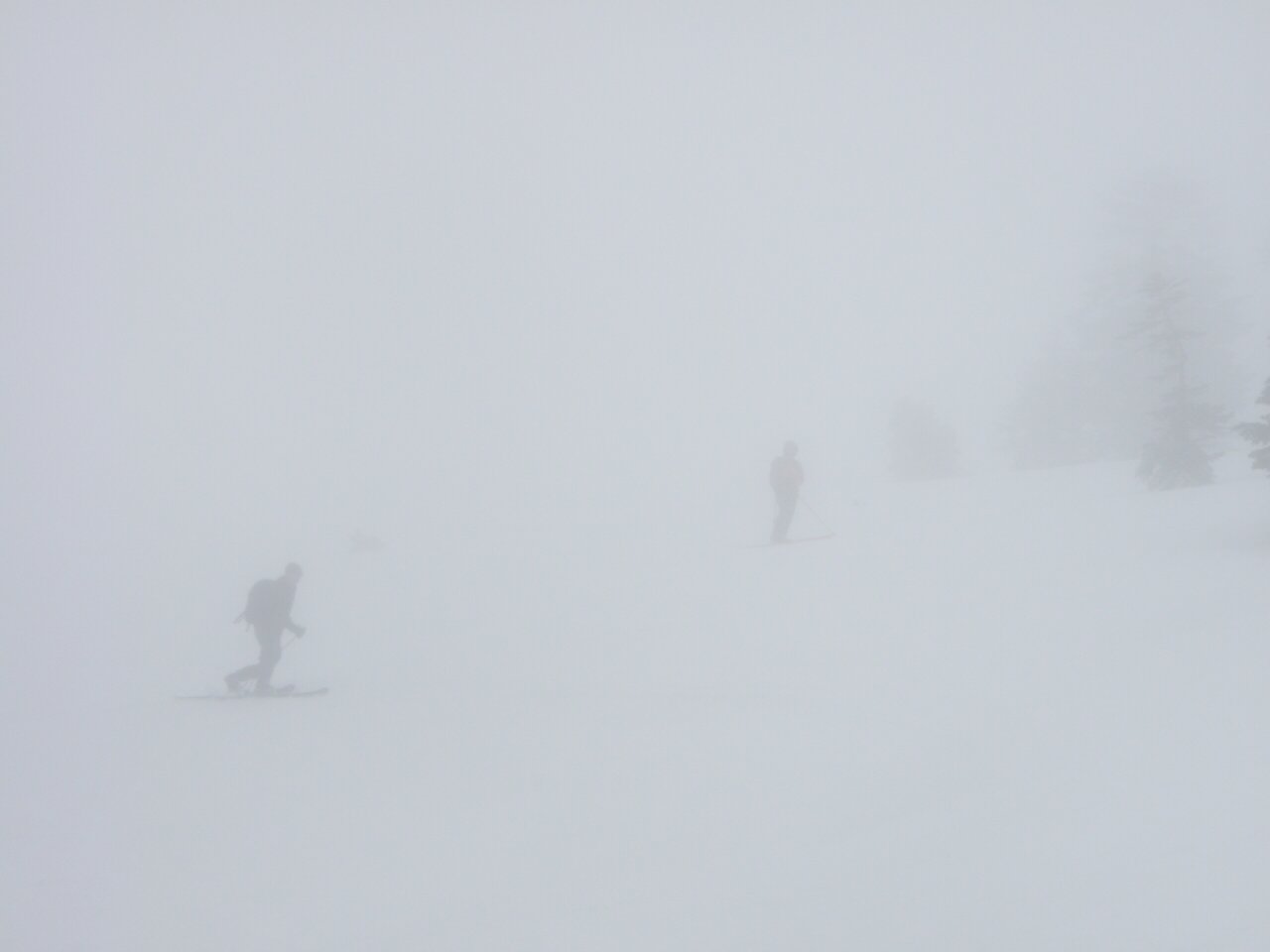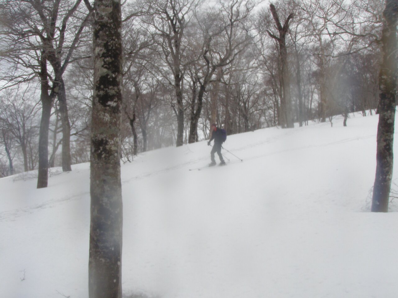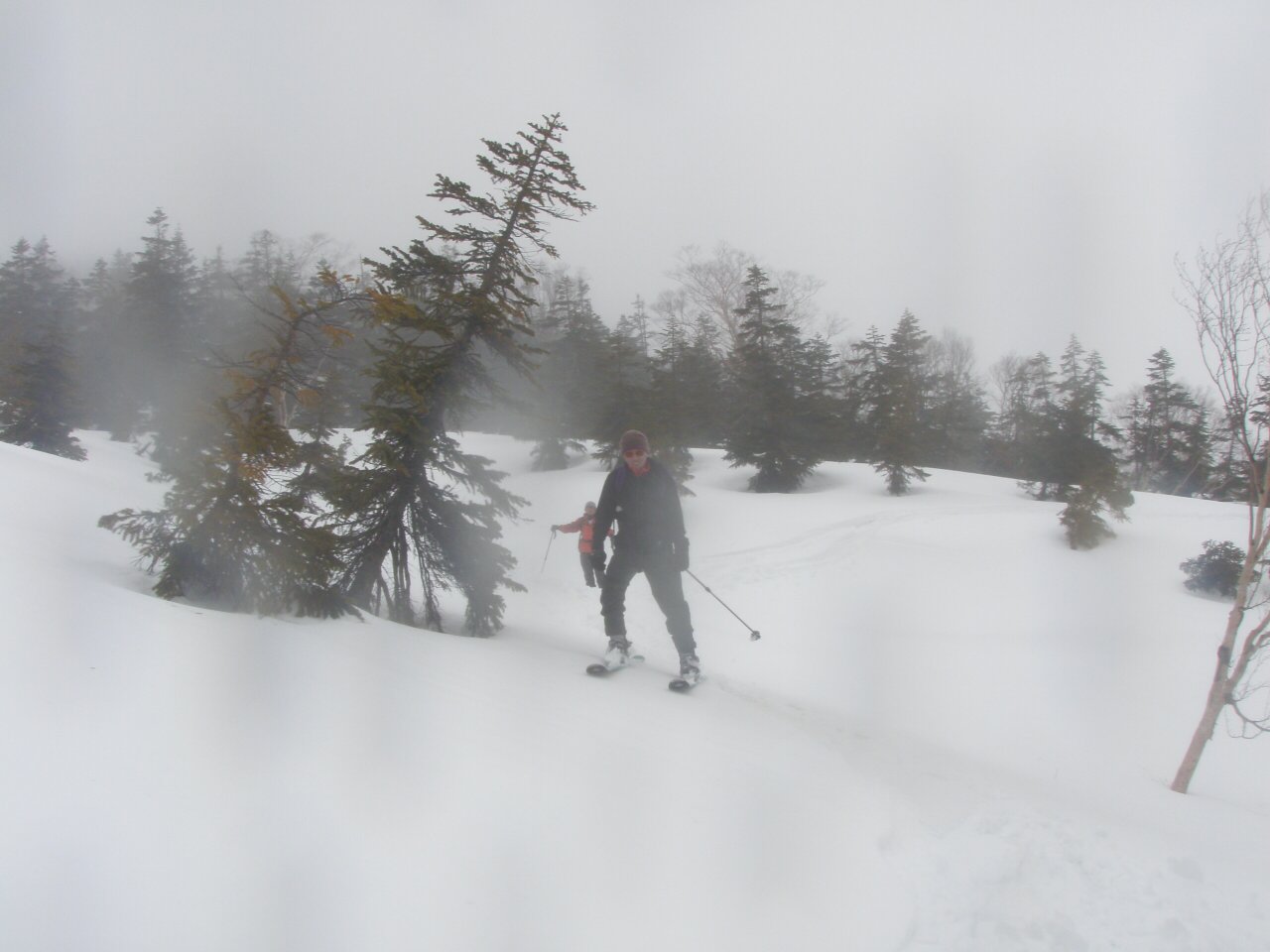 出発するときは天気が回復しそうな感じだったのに! 至仏山も見えてて、こりゃぁいけるぞって期待したんだけど・・・ 雨ですよ(悲 ウェアにあたる雨の音を聞きながら登ります。 田代湿原まで上がったら、雨は小降りなんだけど、またしても霧が! 今日はなんとか小至仏の肩までは行きたいと思ってたんだけど、そこまでいけませんでした・・・・ それでも昨日よりはオヤマ沢の広いところを滑ります。 樹林帯からオープンバーンに出ると何にも見えない! こういう時は斜度が変わっても気がつきにくいので、やっちゃいます。 標高差で150Mぐらい下がると、ようやく霧も晴れてきて視界も広がります。 で!主尾根に取り付いて下ります。 下山してくると天気が良くなるお決まりのパターンですね(苦笑 ゴールです。 昨日よりはすべりも楽しめたと思います。 お疲れ様でした。 この後は昨日同様 食堂でお弁当食べて終了です。 ゼヒ来年またチャレンジしましょーねー 白いもやが写ってますが、心霊写真じゃないので念の為(笑 雨に濡れたレンズのせいです! PR