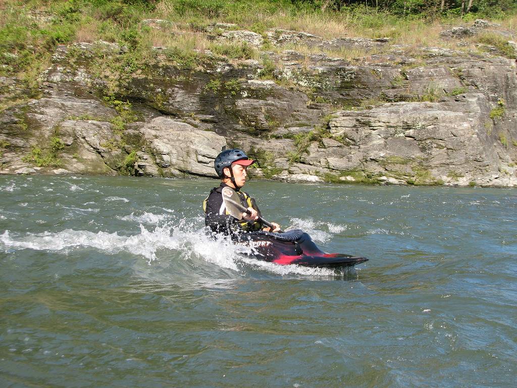ICF(国際カヌー連盟)のレギレーションによって定められたサイズにもとずいてデザインされるので、パッと見、みんな同じような形になってます。 まぁフォーミュラカーみたいなもんなので仕方ないんだけど・・・ このDonsaは手軽にスラロームをって事で今期よりデビューしたポリエチレンのスラロームカヤックです。 実はこの手のカヤックが出たのは10数年ぶりなんですねぇ。 数年前にICFのレギレーションが(全長4Mから3.5Mに)、変更されたこともこのカヤックが生まれた要因になってると思います。 このカヤックはICFレギレーションに合わせてデザインされたカヤックなので(世界初!)、レースに出れるんですが・・・まぁ誰もでないでしょうねぇ(笑 で、そののり味は!まぁポリなんで、当然純粋な競技艇からすれば笑っちゃうようなもんですけど、以前のスラローム風?カヤックからすれば驚くほど良くなってます。 最近のターンスタイルに合わせたデザインなので、内径リーンしか知らないレベルのパドラーが乗ると、曲がらないだろーなー(笑 しっかりスイープしてターン方向へ先行動作しつつドローを入れれば、ターンしつつグイグイ前に走ろうとします。フリースタイルカヤックでは味わえない感覚です!スターンのボリュームも程よく絞られているので、なれればピボットターンも可能です!メーカーは選手のトレーニングボートとして開発したみたいですけど、手軽にスラロームカヤックを楽しもうと思う方には是非乗って頂きたいカヤックですね! ちなみにお値段は¥103000(税別 リーズナブルだと思います! PR |