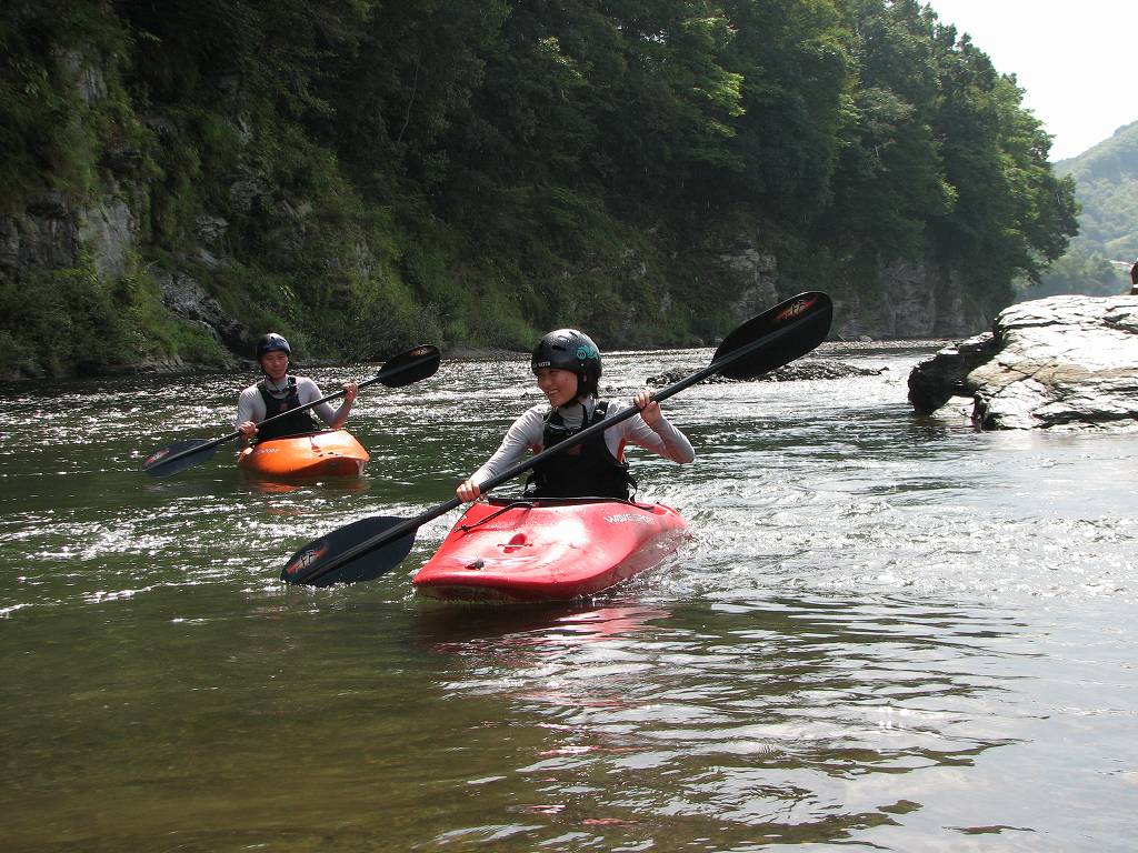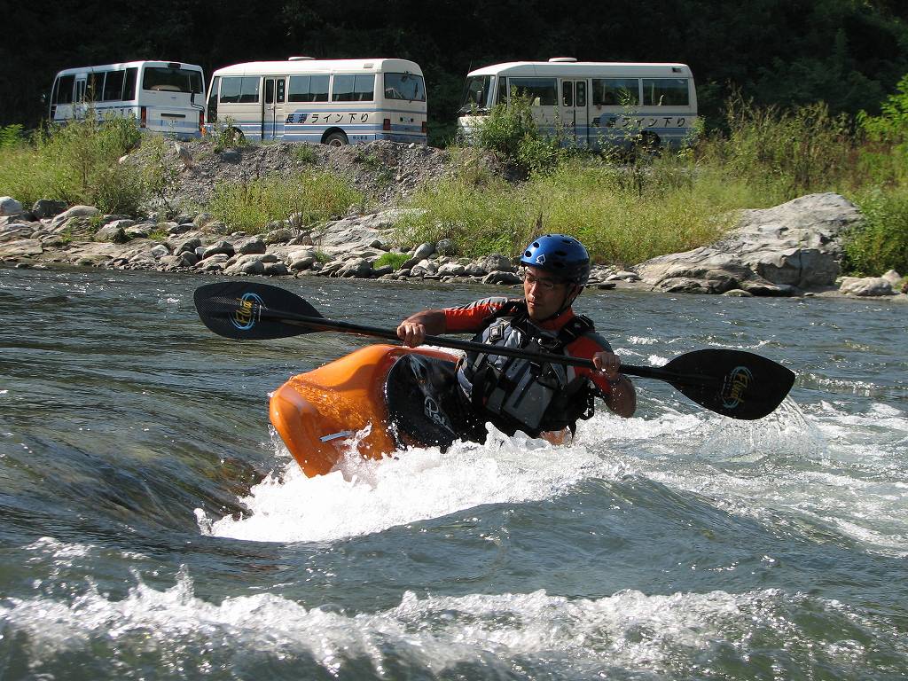 × [PR]上記の広告は3ヶ月以上新規記事投稿のないブログに表示されています。新しい記事を書く事で広告が消えます。 一口にカヤックって言っても、その楽しさの方向性って多岐に広がっていて、ひとくくりに出来ないんですよねぇ 今日はそんな方向性の違うカヤックスクールが午前と午後で! 午前は川を下るって言うことをメインに行うスクールです。 流れを読んでそれにあわせたカヤックの操作を学んで頂きます。 もちろん流れを理解して頂くための反復練習は欠かしません。ただ下るだけじゃスクールじゃ無くなっちゃうもんね(笑 午後は積極的に流れでカヤックを動かす為のスクールです。 波を利用して、いろんな動きをしていきます。 流れを利用する事で、カヤックを立体的に動かしてみたり・・・ カヤックの楽しさは一様では無くて、様々な楽しみ方あるので、僕らインストラクターは多くの方向性を示せるように日々努力しなきゃなりません。 大変です(笑 ついに!ついに入りました!待ち望んだカヤックです。 万人向けのカヤックだと思います。 初心者もエキスパートも乗れるカヤックってそうそう無いですからね! 今日夕方早速乗ってみたんだけど、 オールウォーターよりも初心者向けかな? とはいえ僕が始めた頃のカヤックよりは断然いい動きしてくれます。 オールウォーターよりもダイレクトな感じのフィン もちろん収納式 但し思ってたより膝周りが狭い設計なので、体重70K以上で、身長のある(175センチ以上)人にはちょっと狭いかも・・・もうひとつでかい10フィートのほうが良いかも? |