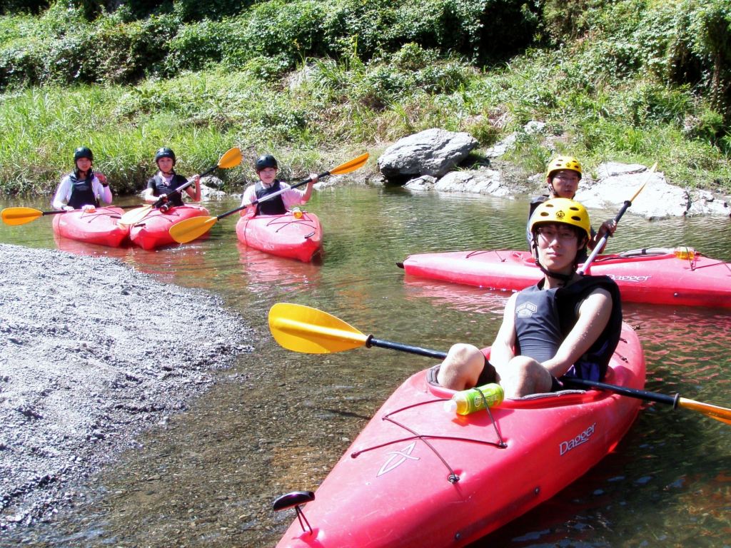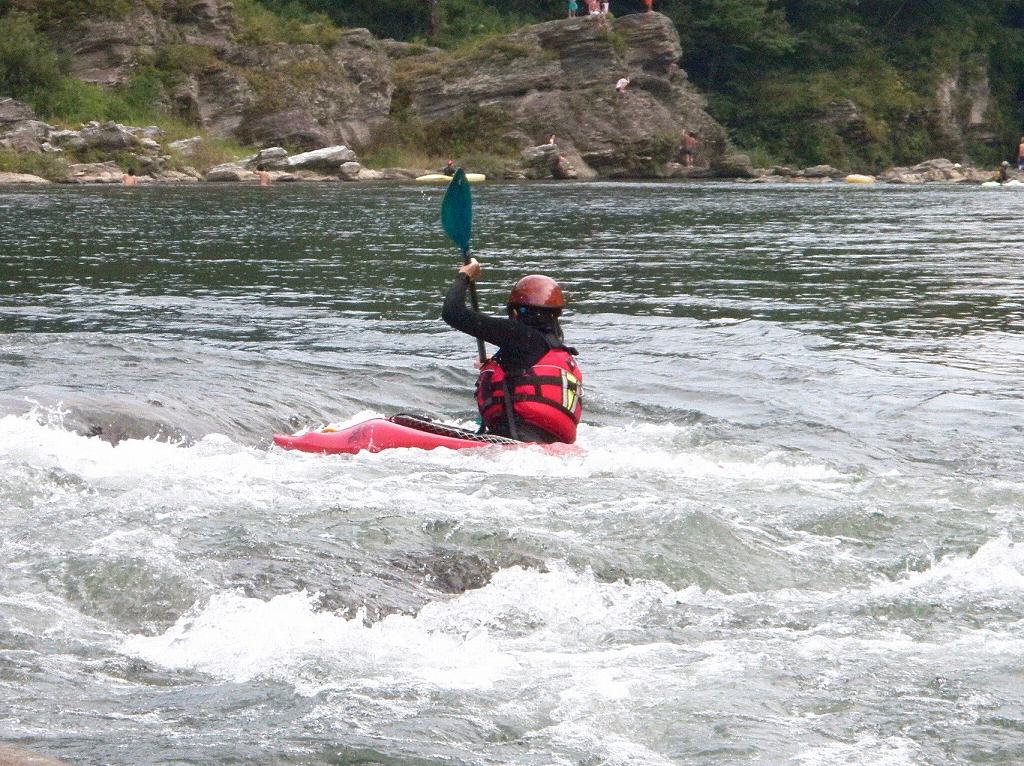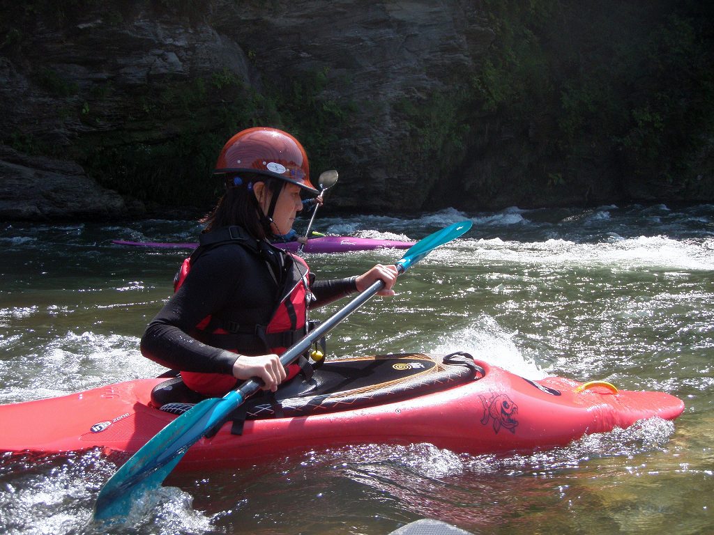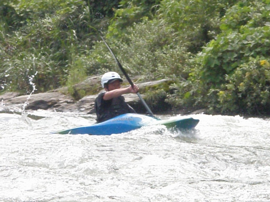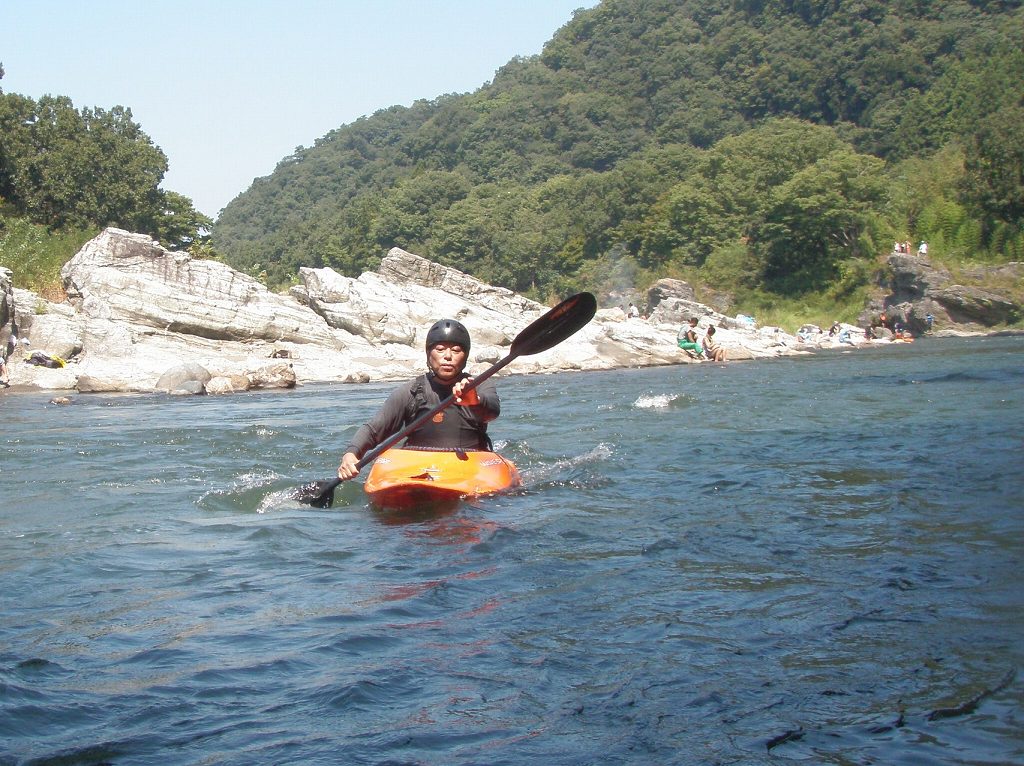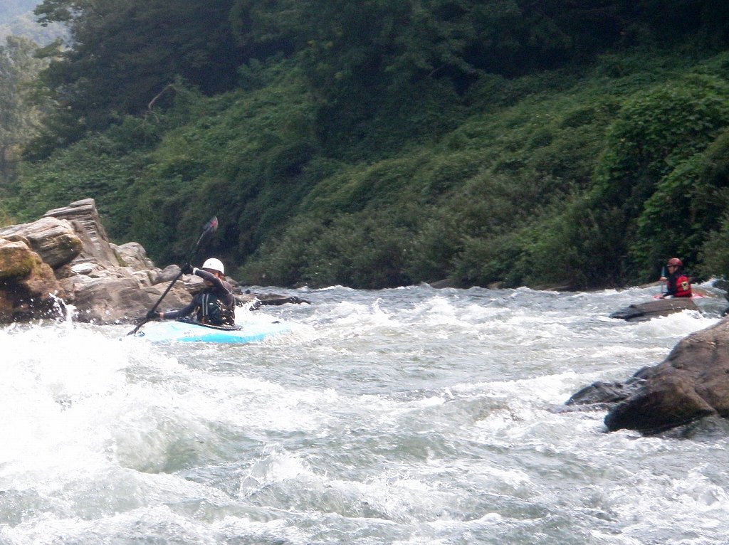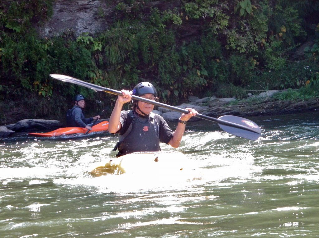 × [PR]上記の広告は3ヶ月以上新規記事投稿のないブログに表示されています。新しい記事を書く事で広告が消えます。 9月にはいってもまだまだあっつい日が続いてます。 今日も猛暑ですねぇ(笑 川の上はいくらか涼しくなってきたけど、それでも2時頃になるともうダメって感じです。 ベーシック2はフェリーと流れの中であわてないようにリラックスするための練習を繰り返し行いました。 ベーシック3では小滝の瀬が今日のメイン! ライン取りを考えてもらうために、コースを下見して、それから下ってもらいます。 もちろんただ下るだけじゃなくって、エディーをとりながら、点と点を模すんでのコース取りを考えてもらいます。川下りをする上でとっても重要な練習です。 朝夕が、すこーし過ごし易く感じてきたものの・・・