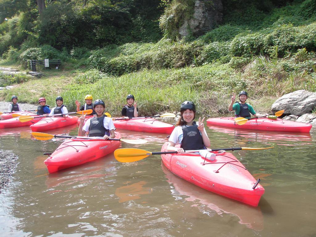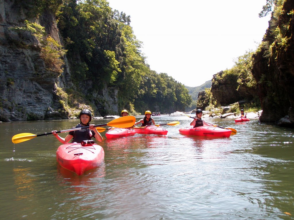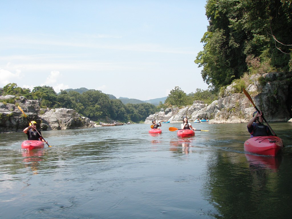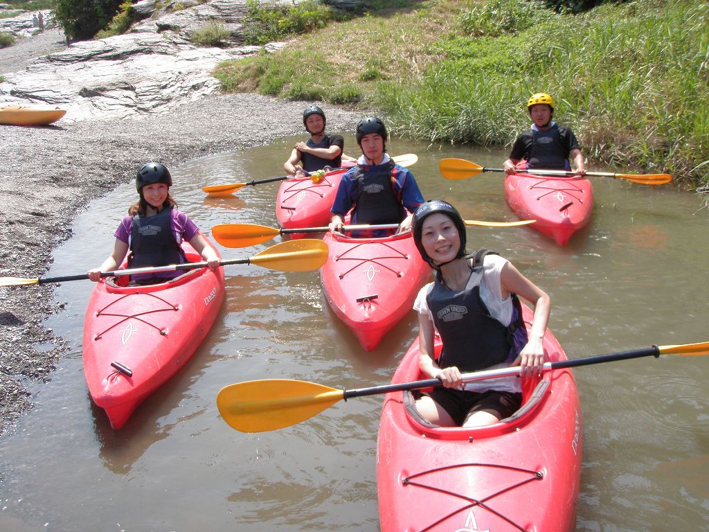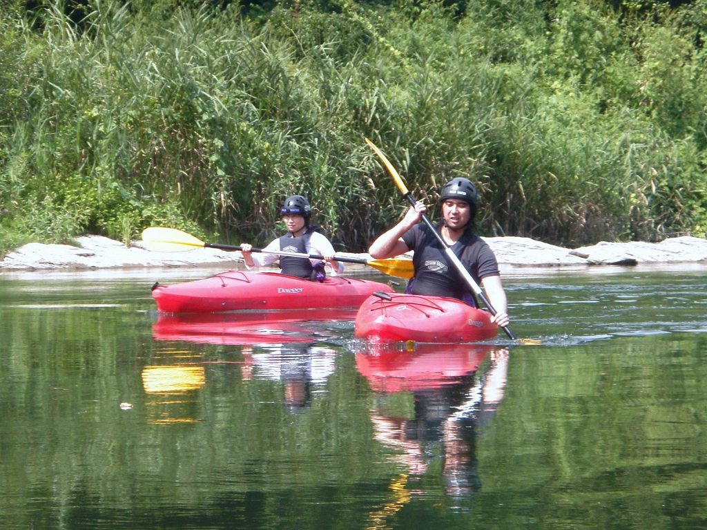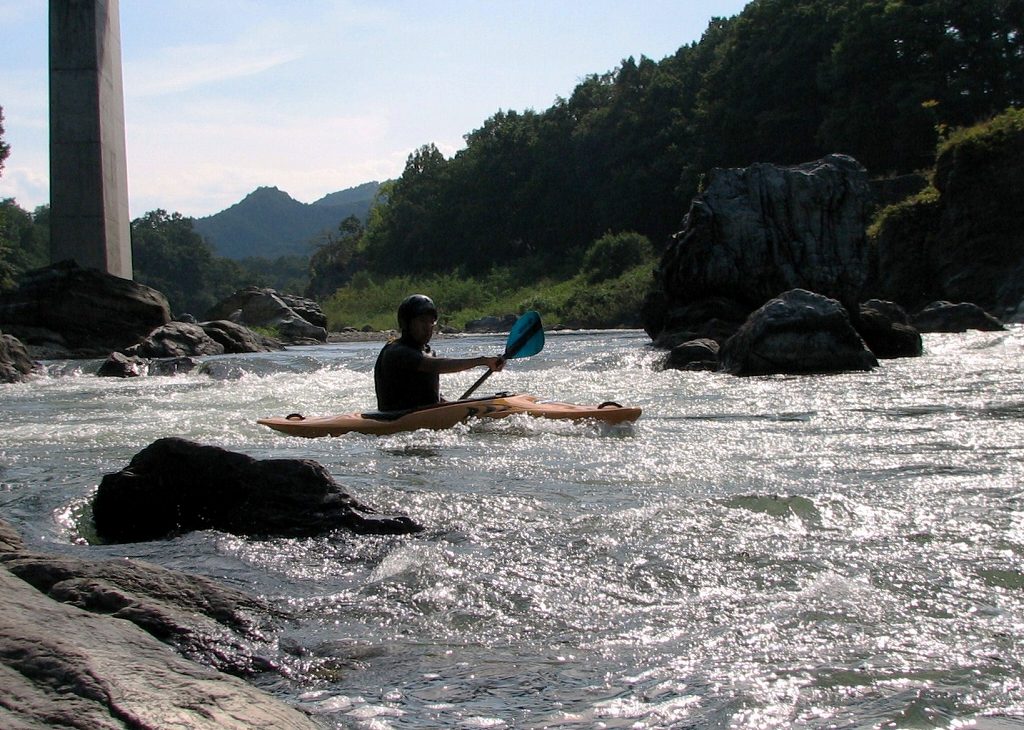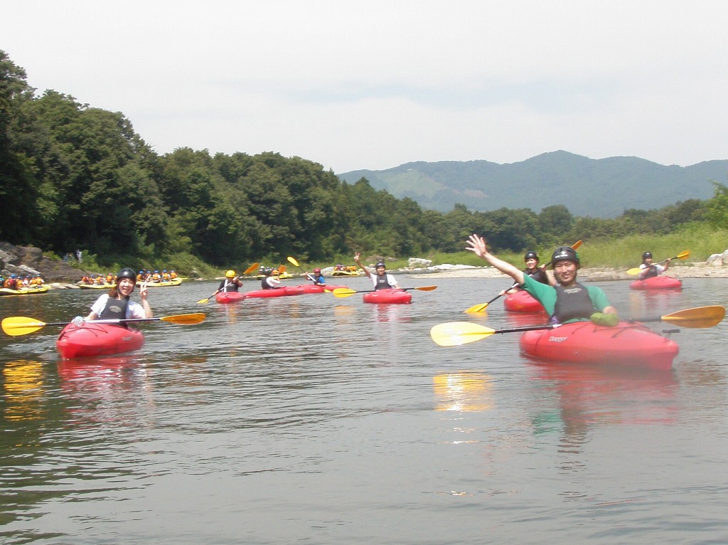 × [PR]上記の広告は3ヶ月以上新規記事投稿のないブログに表示されています。新しい記事を書く事で広告が消えます。 9月にはいってもまだまだあっつい日が続いてます。 今日も猛暑ですねぇ(笑 川の上はいくらか涼しくなってきたけど、それでも2時頃になるともうダメって感じです。 ベーシック2はフェリーと流れの中であわてないようにリラックスするための練習を繰り返し行いました。 ベーシック3では小滝の瀬が今日のメイン! ライン取りを考えてもらうために、コースを下見して、それから下ってもらいます。 もちろんただ下るだけじゃなくって、エディーをとりながら、点と点を模すんでのコース取りを考えてもらいます。川下りをする上でとっても重要な練習です。 朝夕が、すこーし過ごし易く感じてきたものの・・・
