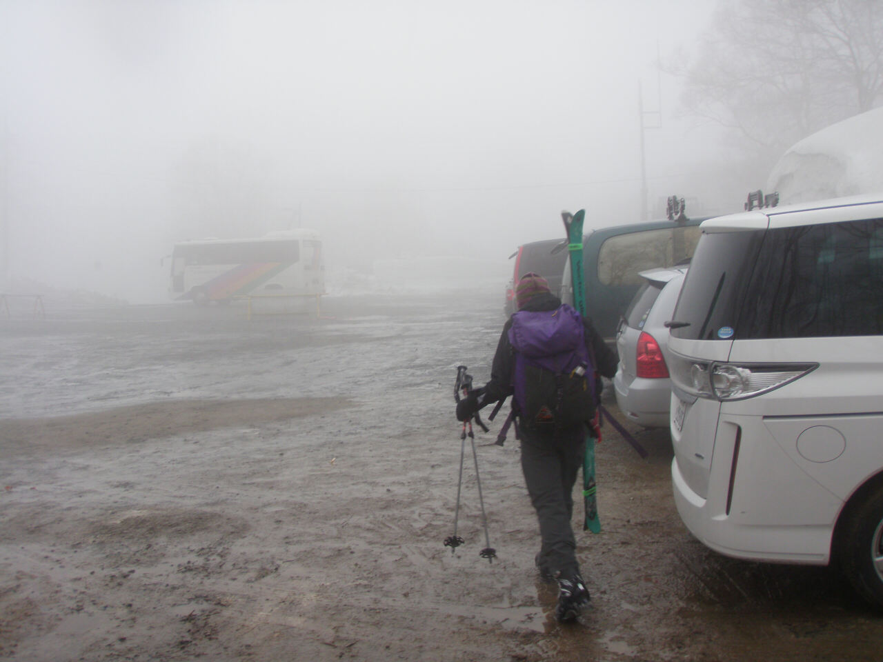 × [PR]上記の広告は3ヶ月以上新規記事投稿のないブログに表示されています。新しい記事を書く事で広告が消えます。 この土日、過密気味だった尾瀬ですが、この天気のせいか、全く人が居ません ガラガラです。駐車場! ガスのせいで何にも見えないです。 ありがたいことに、どうにか雨にならずに済みました。 但し霧で何にも見えませんが・・・・ 田代湿原まで上がったところで、今日は登りは終了です。 で、オヤマ沢からドロップイン、オープンバーンはカッチカチ!なので樹林帯を抜けつつ滑ります。 お客さんの体調も、もうひとつだったので今日はお昼には終了です。 今日の鳩待峠駐車場 たった3~4台しか止まってません 今日のお昼は鳩待山荘の食堂で! 今回は戸倉の四季亭さんのおにぎり弁当! 玉子焼き美味しかったです。 明日のツアーもどうなるか・・・ちょっと心配です。なんとか回復してくれるといいなぁ! |