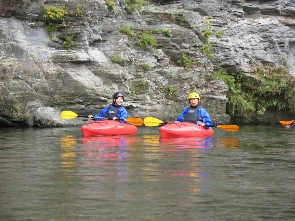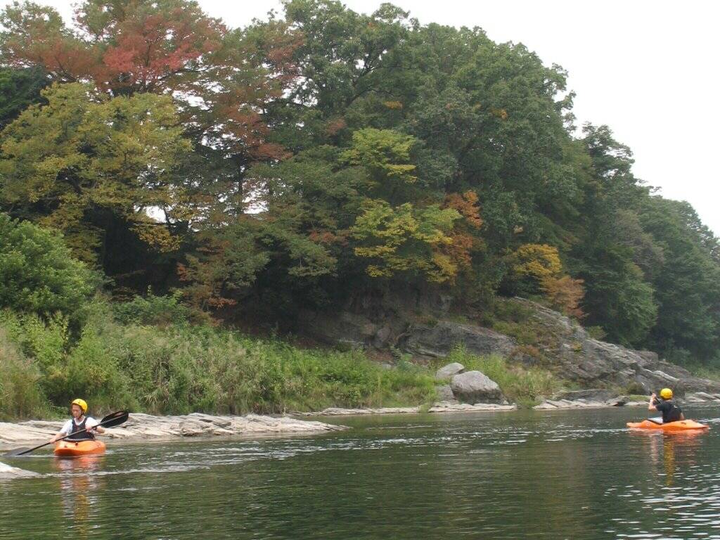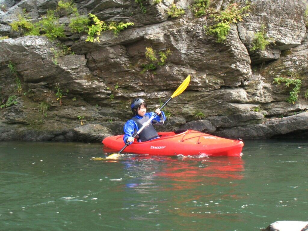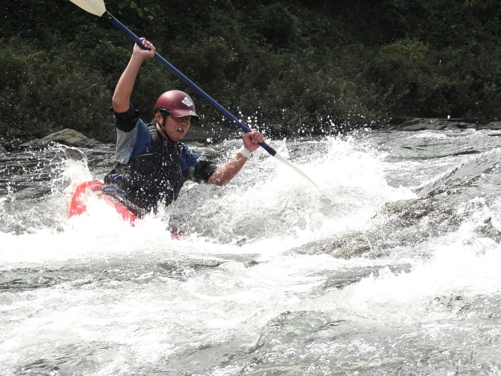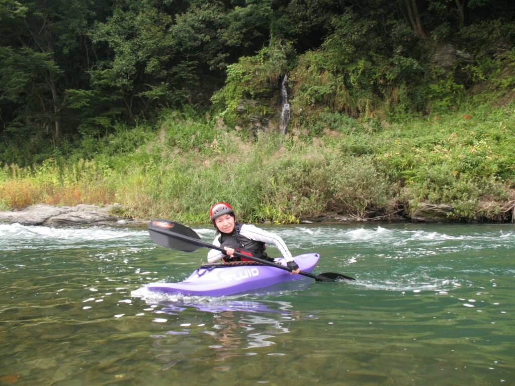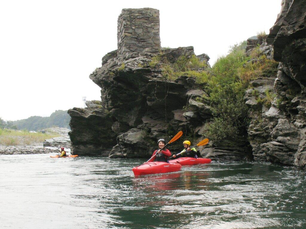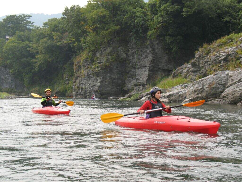 結局この日は体験カヤックとスクールを同時にこなすことになりました(悲ー 前日とうって変わって、悲しい曇り空 今日は体験コース5名とスクール4名 長瀞もこの日は大混雑! ライン下りの順番待ちは4時近くまで行列が出来てました。 もちろん川の上も大混雑(笑 青いウェアはラフトカヤックパックのお客さん。 グレイのウェアはスクールのお客さん。 ウェアが変わります。 この日のスクールはベーシック1から2へ移行しながら行いました。 静水での基本ストロークから、エディーラインを使ってリーニングの切り替えとターンを重点的に行います。 流れに上手く乗らないと、スピードが稼げなくなります。そうすると次のターンに勢いがつかなくなっつちゃうので気をつけましょうねぇ パドルの動きに気を取られると、今度はリーニングを忘れちゃったり(笑 いっぺんに色々やらなきゃならないので、難しいですよね! |