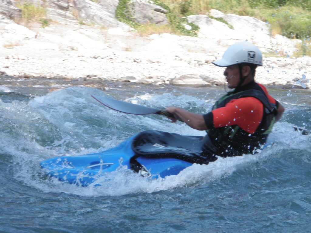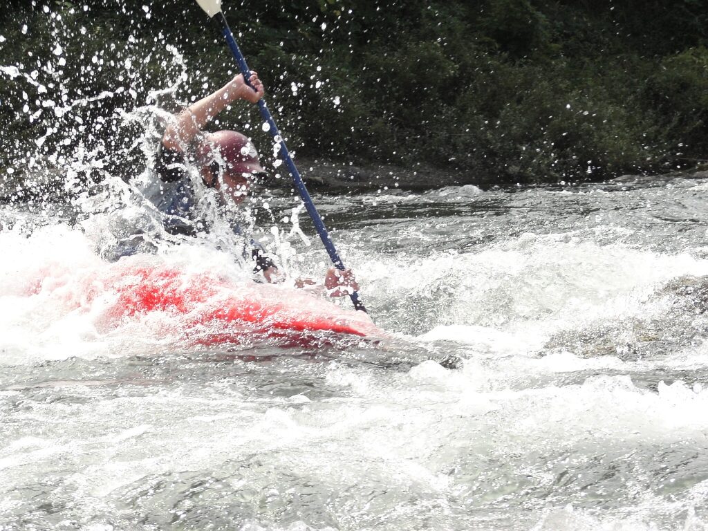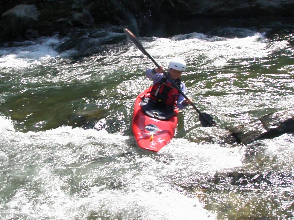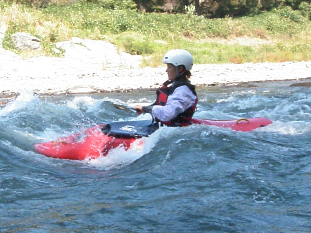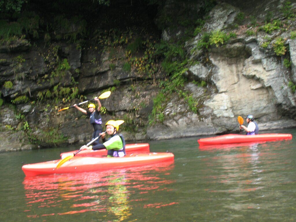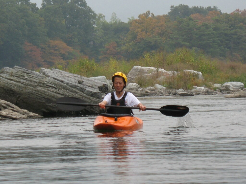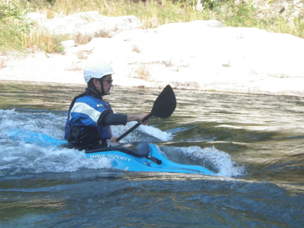 結局この日は体験カヤックとスクールを同時にこなすことになりました(悲ー 前日とうって変わって、悲しい曇り空 今日は体験コース5名とスクール4名 長瀞もこの日は大混雑! ライン下りの順番待ちは4時近くまで行列が出来てました。 もちろん川の上も大混雑(笑 青いウェアはラフトカヤックパックのお客さん。 グレイのウェアはスクールのお客さん。 ウェアが変わります。 この日のスクールはベーシック1から2へ移行しながら行いました。 静水での基本ストロークから、エディーラインを使ってリーニングの切り替えとターンを重点的に行います。 流れに上手く乗らないと、スピードが稼げなくなります。そうすると次のターンに勢いがつかなくなっつちゃうので気をつけましょうねぇ パドルの動きに気を取られると、今度はリーニングを忘れちゃったり(笑 いっぺんに色々やらなきゃならないので、難しいですよね! |