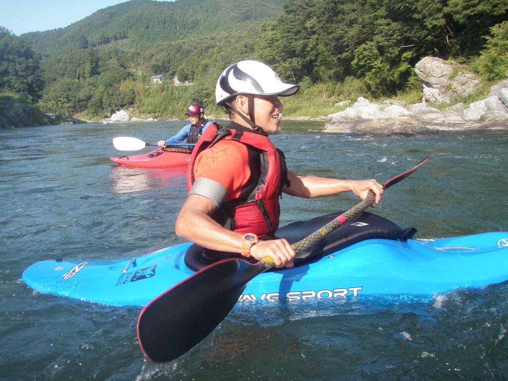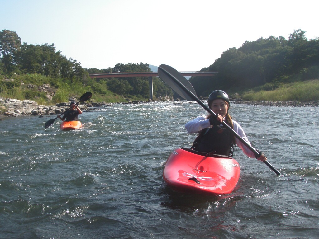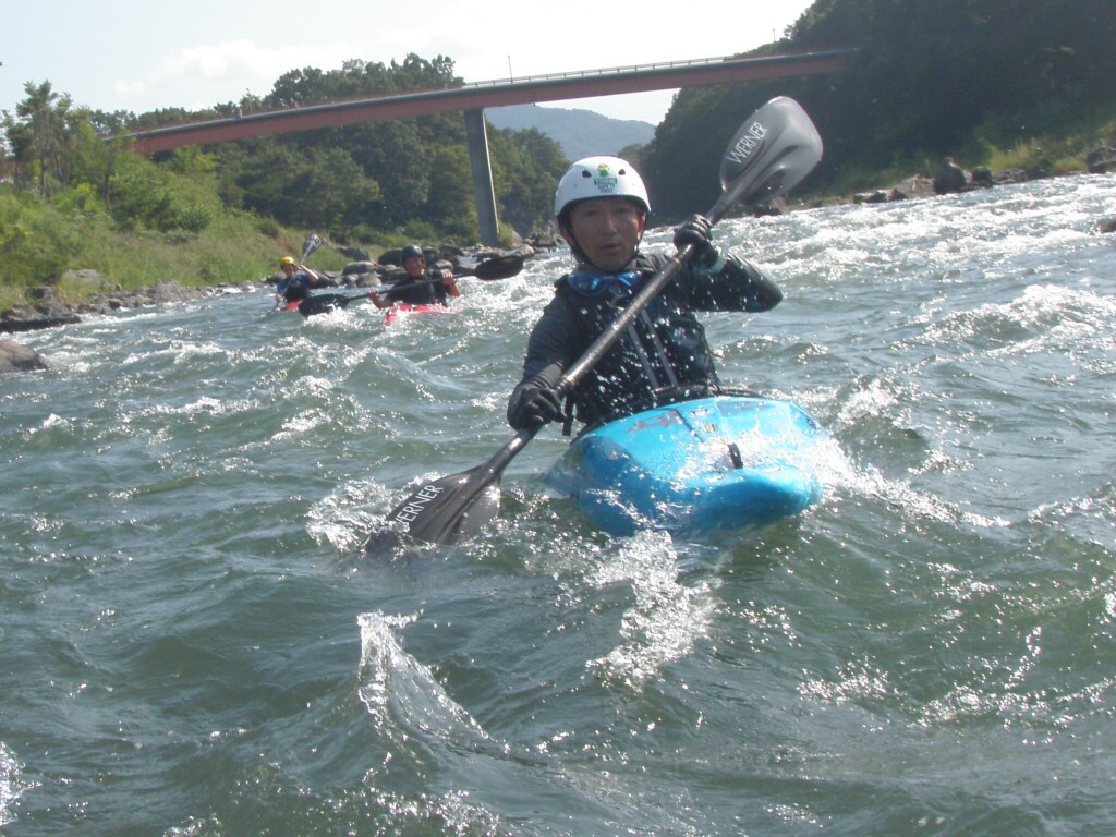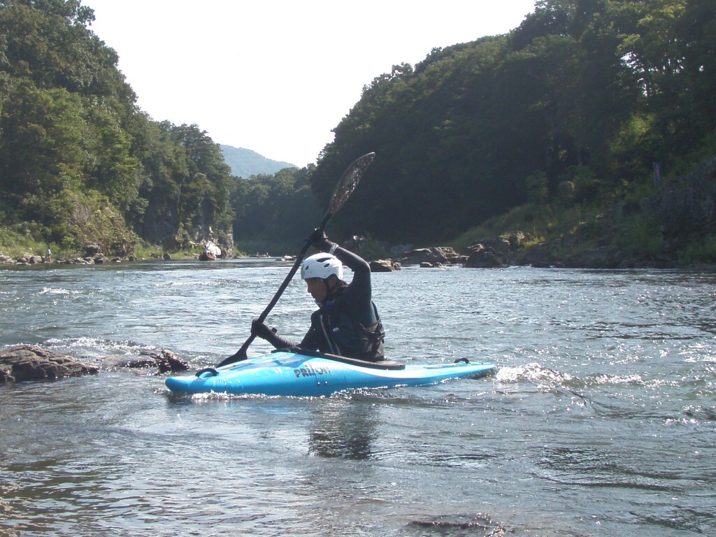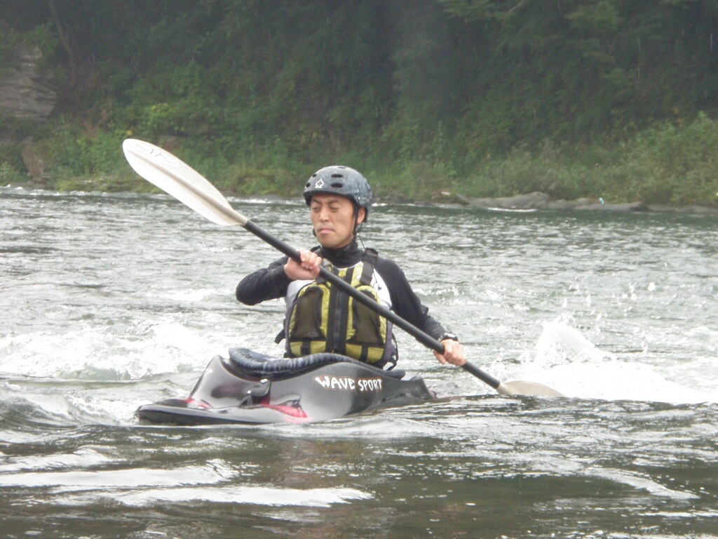 水温も一時より上ってき、てロールを繰り返してもそれ程疲れない位です。 午前午後共に全力で楽しんじゃいましたねぇ 午前中はマンツーマンで、フリースタイルベーシック。 今日はスターンからのカートホイールとホールでのバランスの取り方をメインに! 午後から2人加わってダウンリバー講習 小滝でターンとフェリー 今日はいつもよりちょっとテクニカルな内容で! 小滝の瀬は、水量が落ちてくるとターンが楽しくなります。 今日の参加者は皆そこそこ漕げる方たちなので、つられて、僕も少々張り切りすぎちゃったかも? 腰がやばいです。(笑 |