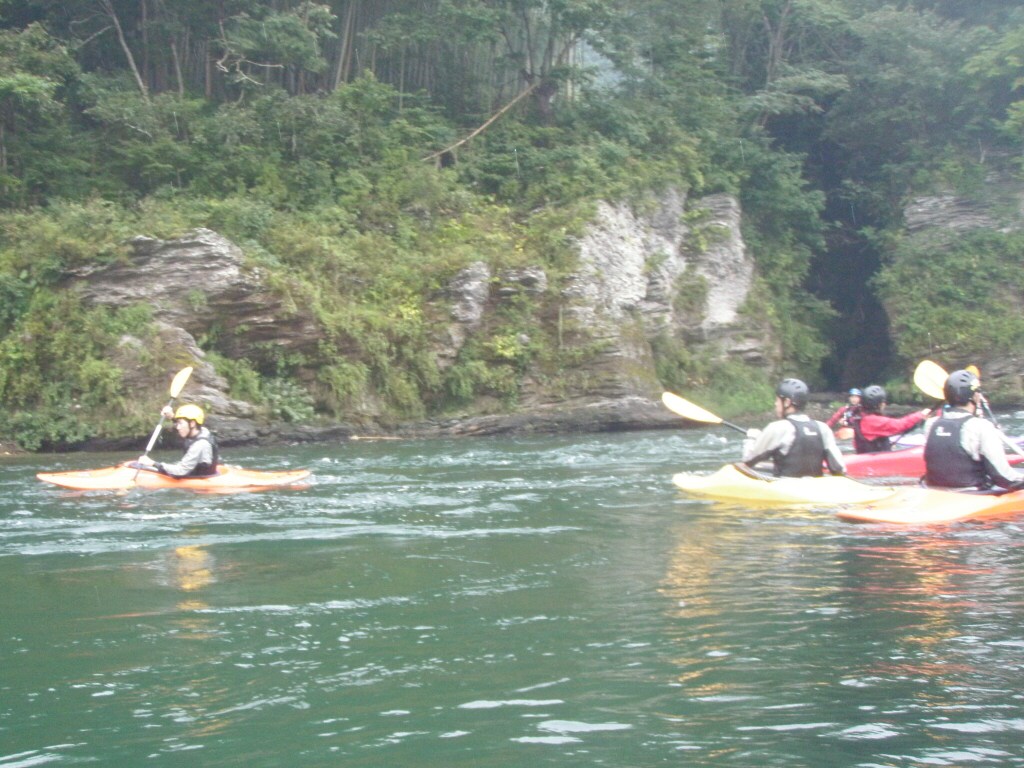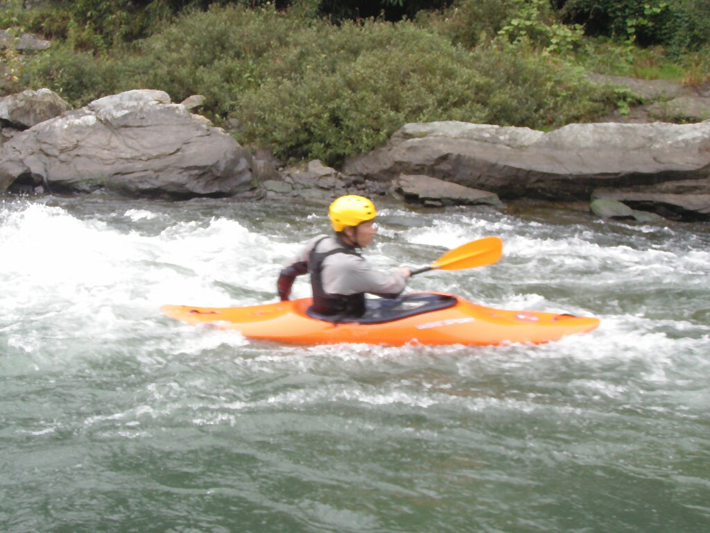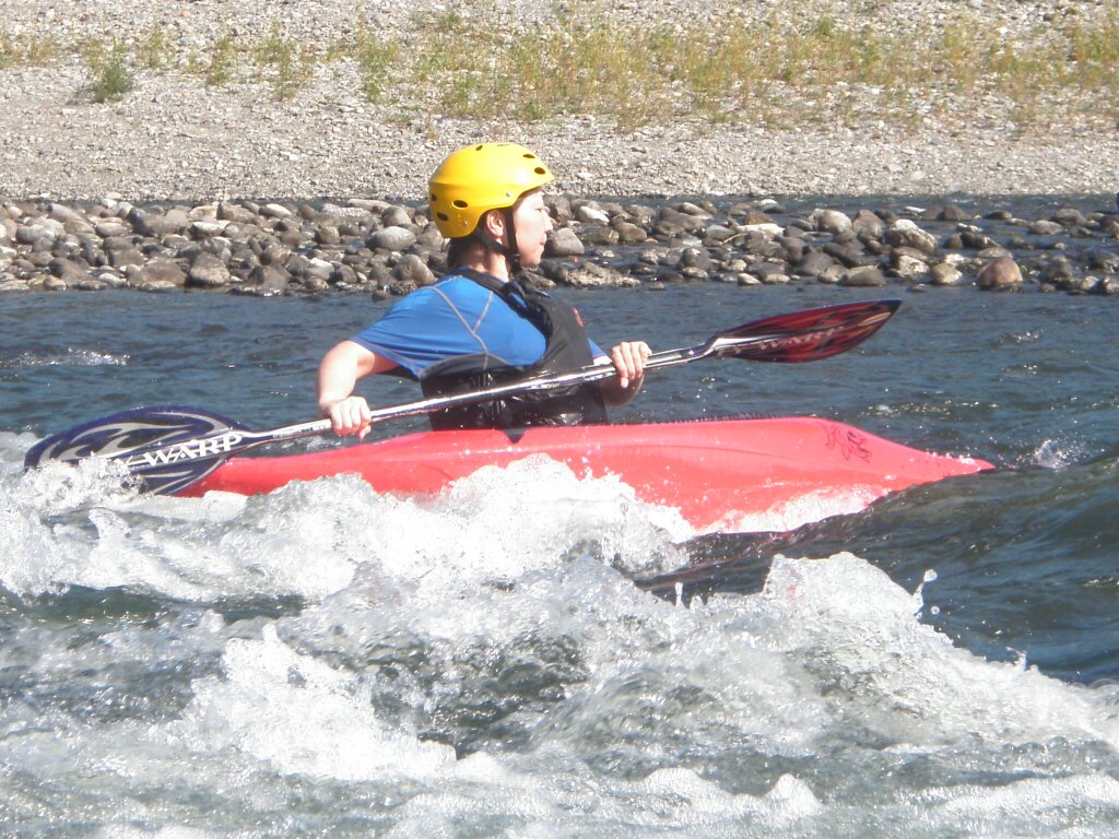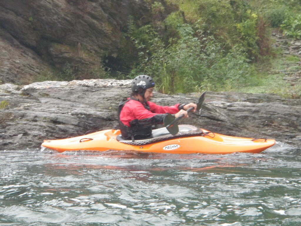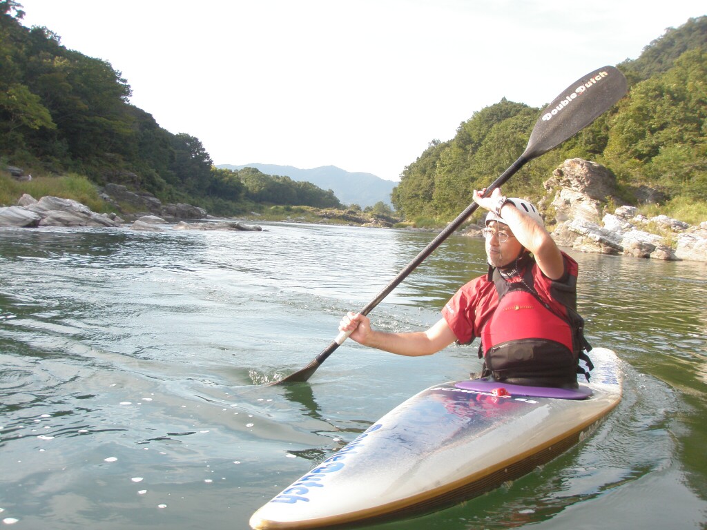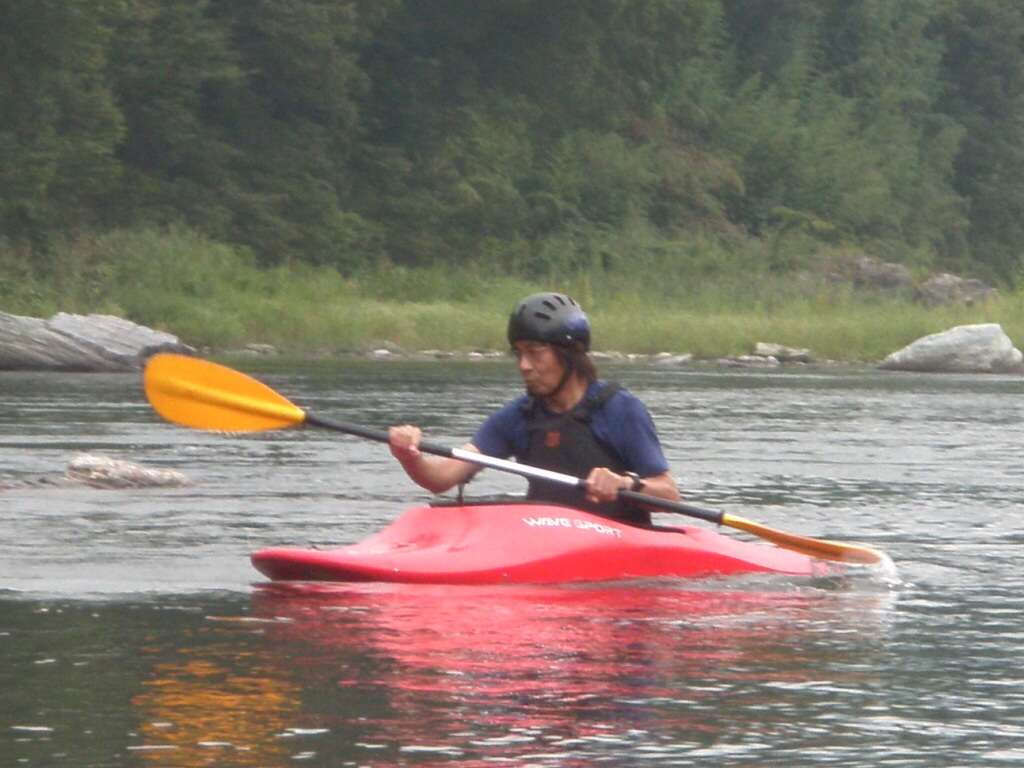 水温も一時より上ってき、てロールを繰り返してもそれ程疲れない位です。 午前午後共に全力で楽しんじゃいましたねぇ 午前中はマンツーマンで、フリースタイルベーシック。 今日はスターンからのカートホイールとホールでのバランスの取り方をメインに! 午後から2人加わってダウンリバー講習 小滝でターンとフェリー 今日はいつもよりちょっとテクニカルな内容で! 小滝の瀬は、水量が落ちてくるとターンが楽しくなります。 今日の参加者は皆そこそこ漕げる方たちなので、つられて、僕も少々張り切りすぎちゃったかも? 腰がやばいです。(笑 |
