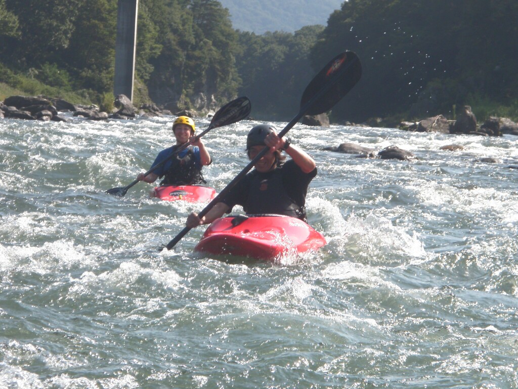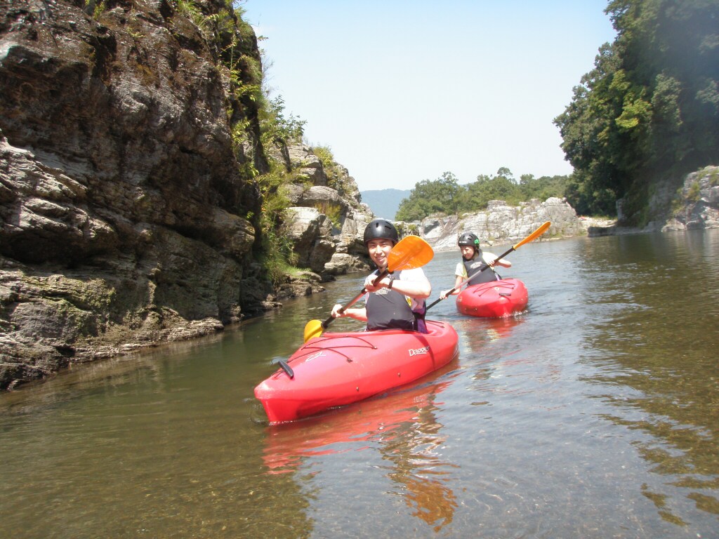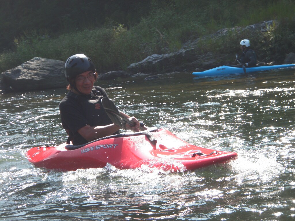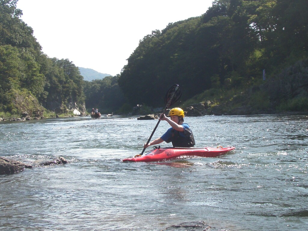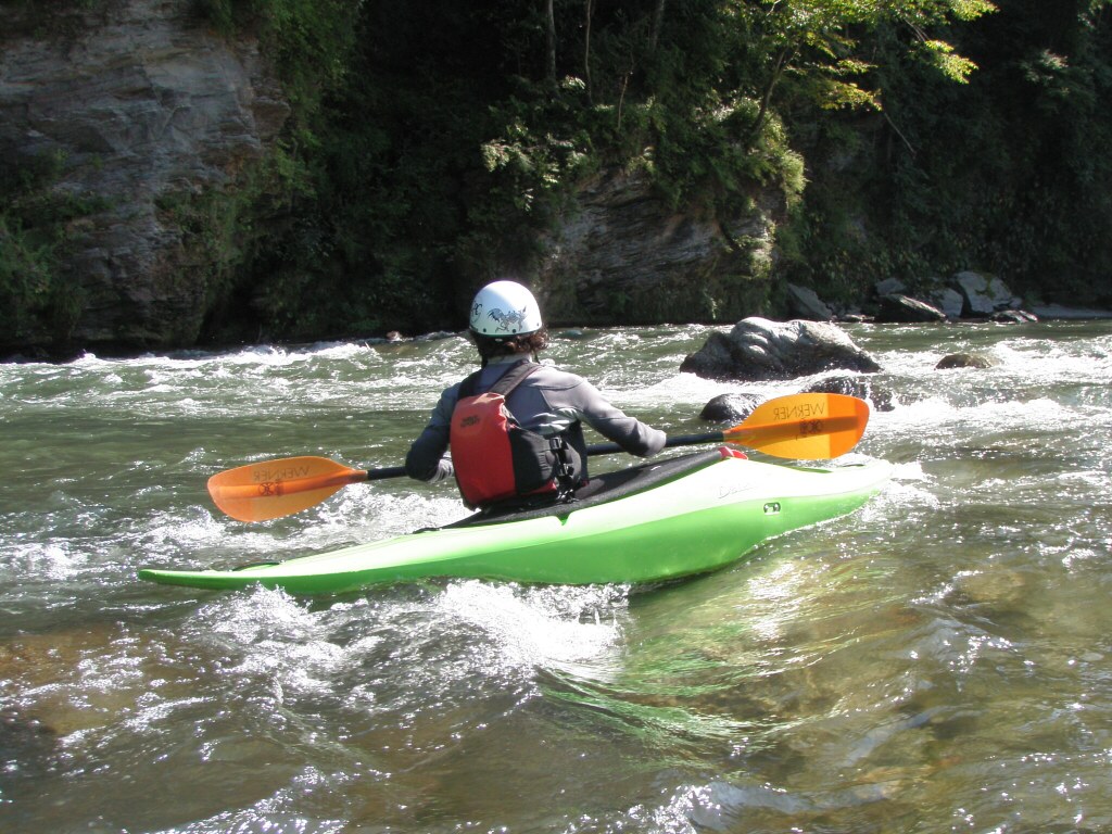水温も一時より上ってき、てロールを繰り返してもそれ程疲れない位です。 午前午後共に全力で楽しんじゃいましたねぇ 午前中はマンツーマンで、フリースタイルベーシック。 今日はスターンからのカートホイールとホールでのバランスの取り方をメインに! 午後から2人加わってダウンリバー講習 小滝でターンとフェリー 今日はいつもよりちょっとテクニカルな内容で! 小滝の瀬は、水量が落ちてくるとターンが楽しくなります。 今日の参加者は皆そこそこ漕げる方たちなので、つられて、僕も少々張り切りすぎちゃったかも? 腰がやばいです。(笑 |