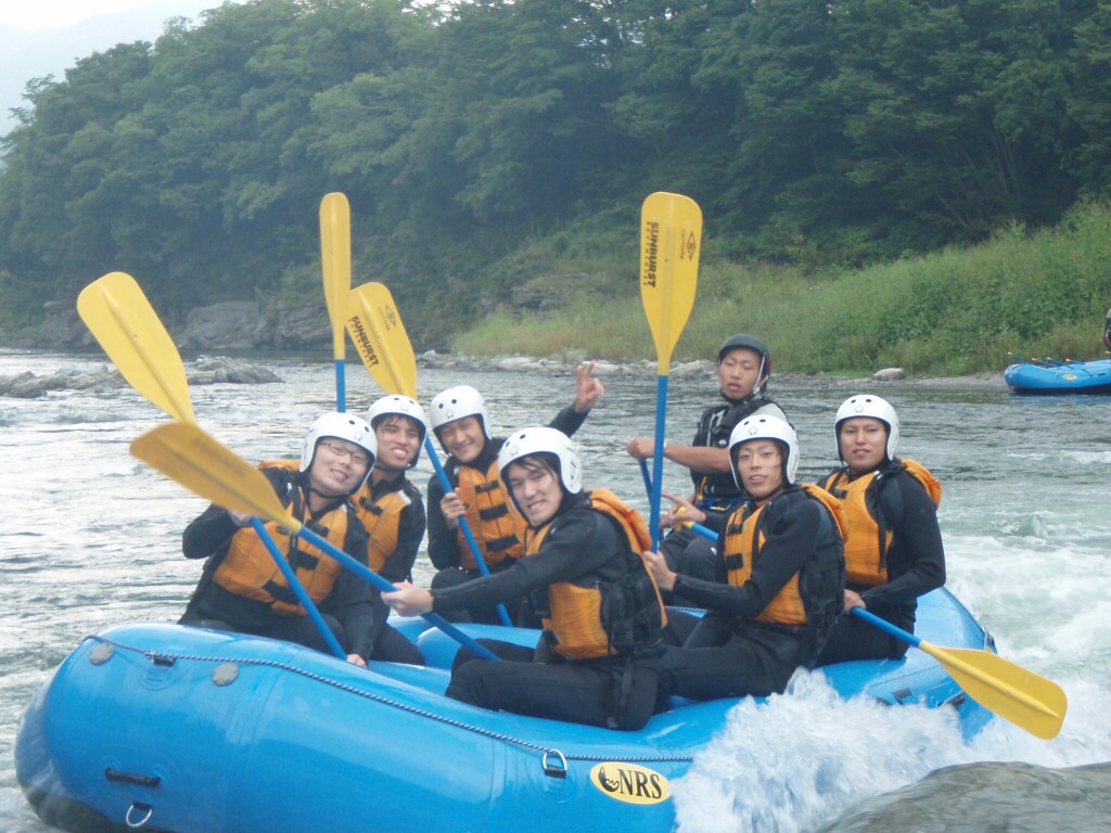 今日は、すっごいノリの良いお客さんたち! 立ち上がっちゃうし(笑 最後は全員ひっくり返されて(誰に? もう全力で楽しんでもらいました! お昼をはさんで、午後からラフティング! もちろん午前より重装備! 大爆笑?のサーフィン 盛上がります! グッタリするほど楽しめる。ラフティングカヤックパックはシルバーウィーク後半もマダマダ予約受付中です。 あ!但し申込みはウェイブグライドじゃなくって、サンバーストアドベンチャーズへどうぞ!