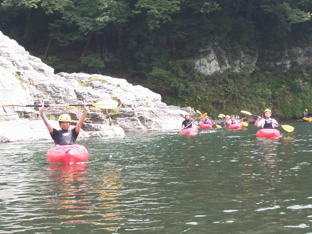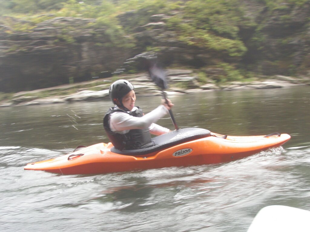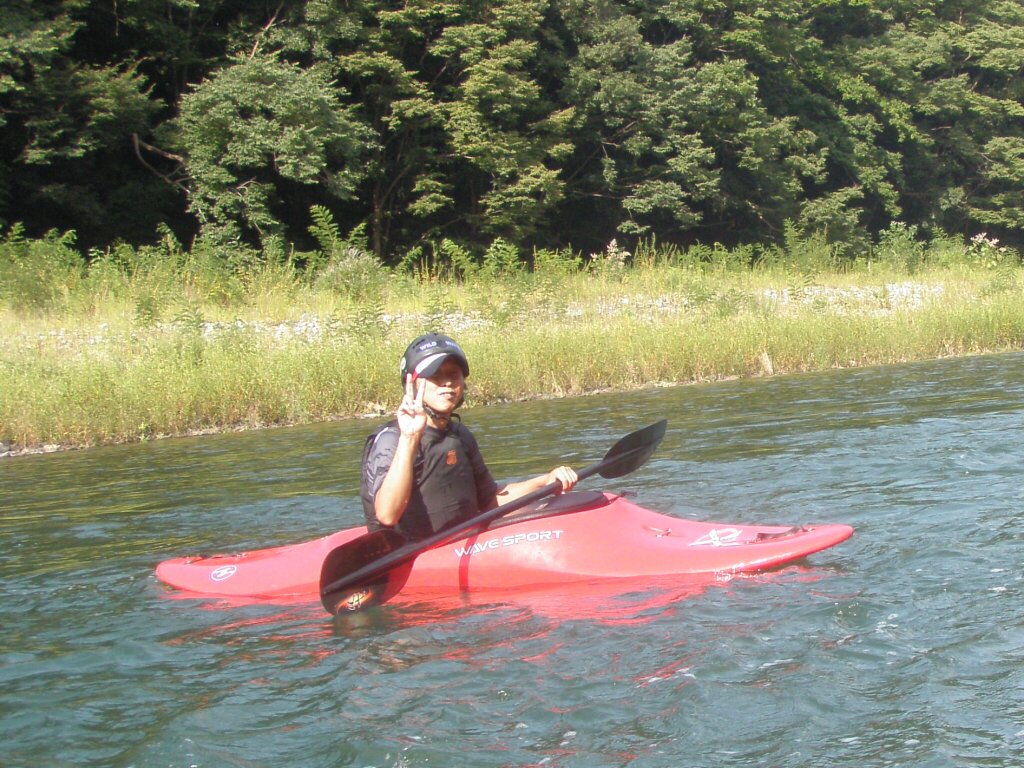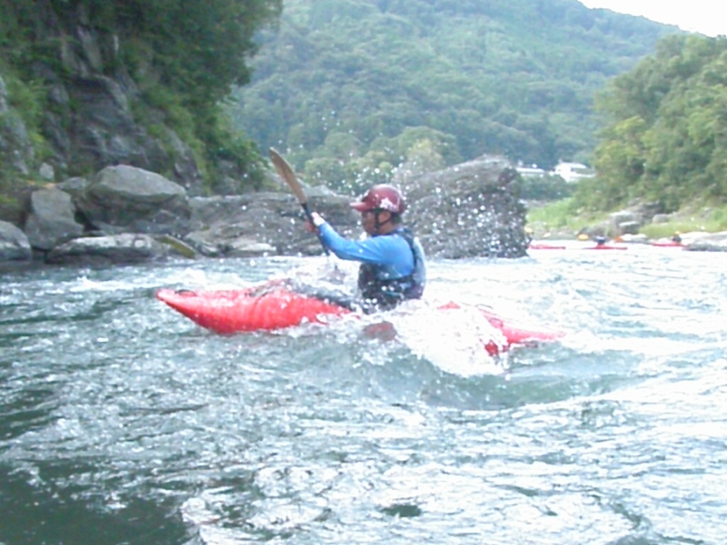 ダブルブッキングですよ・・・体験コースと講習がモロバッティング! 但し救いがあるのは、激流を下りたいっていう特殊な希望の体験コースだったので何とか同時開催で来ましたが・・・ 講習のお客さんは常連さん達なので、料金もディスカウントさせてもらって平謝りでなんとか許してもらえましたが・・・・もう今後こんなことの無いように気をつけなきゃ!です・・・ 水量的にはマズマズでした。 それにしても、新しく買っ防水カメラは反応遅いしピント合いにくいし・・・1000万画素なんてまるで意味無し! 午前は意外と気温が上がらず、ちょっと寒かったけど、午後は気温が上がってくれて、助かりました。 上着を着ようかどうか結構悩みましたもんねぇ。 それにしても今日のお2人には色々手伝ってもらって助かりました。ありがとうございました!