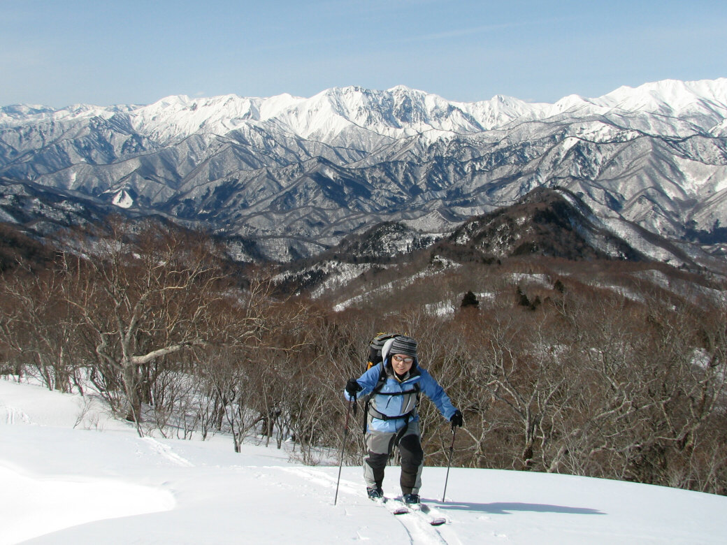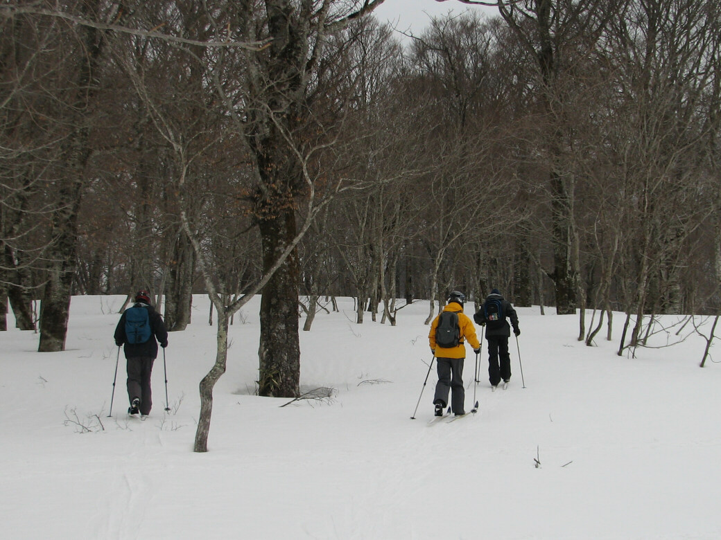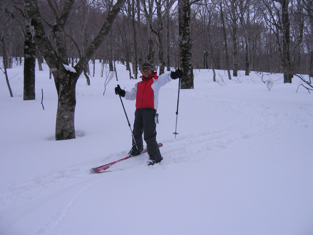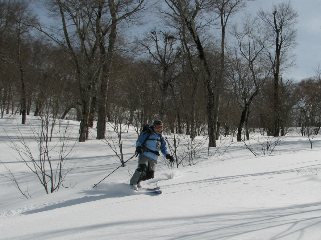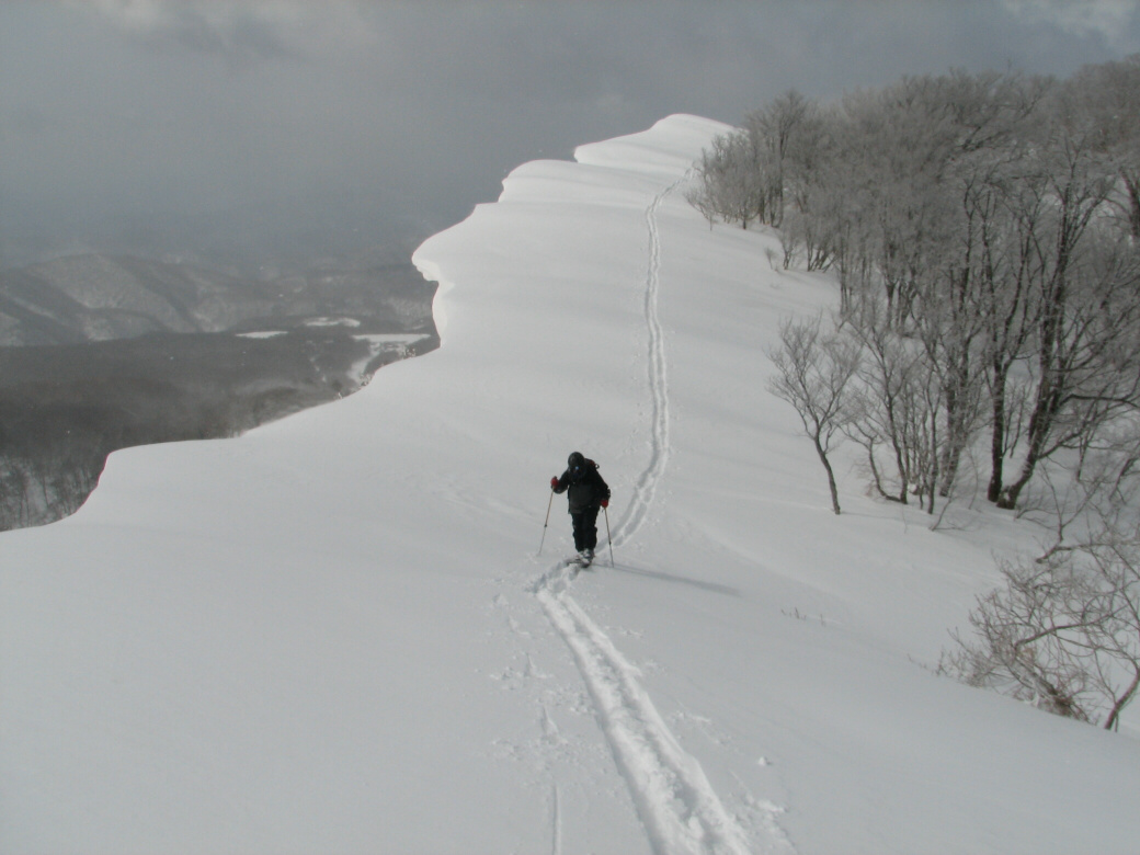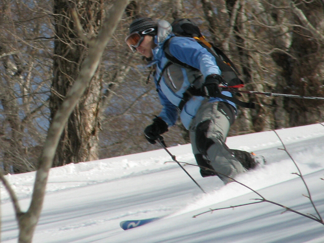 いや・・・そんなに荒れてるわけじゃないんだけど・・たまに青空も見えちゃったりします(笑 玉原のウッディーコースからファミリーコースに抜けるコース(ここだけ名前が無いんです) 講習するには最適なところ 何より人気が無くて(なぜかな?)他のスキーヤーがいません。 おまけに森の中にもヒョイって入れちゃうし(笑 リフト2本使わないと入れないんですね~ それが原因か? 今日のお客さんは、著名なプロスキーヤーと遊んでるツワモノです。 テレマークは、すごい勉強にになるって、楽しんでいただけました。 午後はミニツアーでBCにもちょっと出て見たり(笑 このコースは定番にしちゃおうかなーって考えちゃいました。 1日おいて、今日も夜後沢ですツアーです。 本来なら、戸隠に行くはずが・・・・お客さんも集まらず・・・結局夜後沢ツアーとなりました。 鹿俣山への最後のふんばりどころ!最後はツボ足で! 鹿俣山から稜線をつめて、いよいよ今日のピーク 1730Mの無名峰へ。 後ろに谷川連峰がクッキリ! 右から剣ヶ峰 獅子ヶ鼻 沖武噂 やっぱり今年は雪が少ないのかなぁ・・・ 剣ヶ峰もいつもはもっと白くなってるんですけどねぇ・・・ ゆ~っくりお昼を食べていよいよダウンヒル 今日は気温があまり上がらなかったので、南向きの斜面もいつもより滑りやすいです。 今日のコンディションは、凍った上に数センチの新雪が乗ってます。 メチャクチャ滑りやすい! ホントにゲレンデを滑ってるみたいでした。こんな事は、そうそうあるもんじゃないです。けれど山の中を滑る以上、トラブルは絶対!避けないといけないので、うかれて滑るわけには行きません。慎重に慎重に! 雪質が抜群によかったので、今日は後半いつもなら絶対に通らない沢も滑ってゲレンデまで帰って来れました。いつもなら最後はゲレンデを滑るのだけど、今日は最後までバックカントリーで終わることが出来たのもラッキーでした。 |