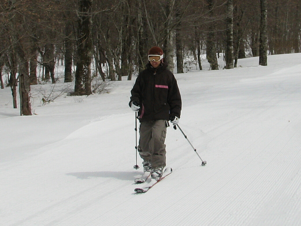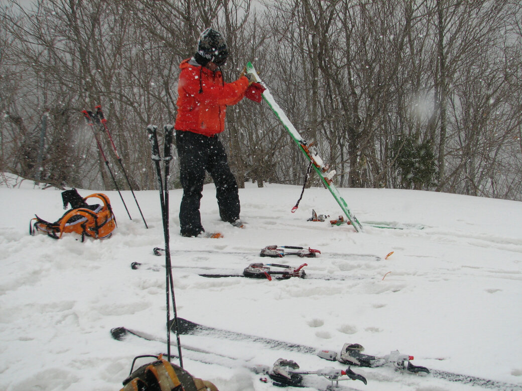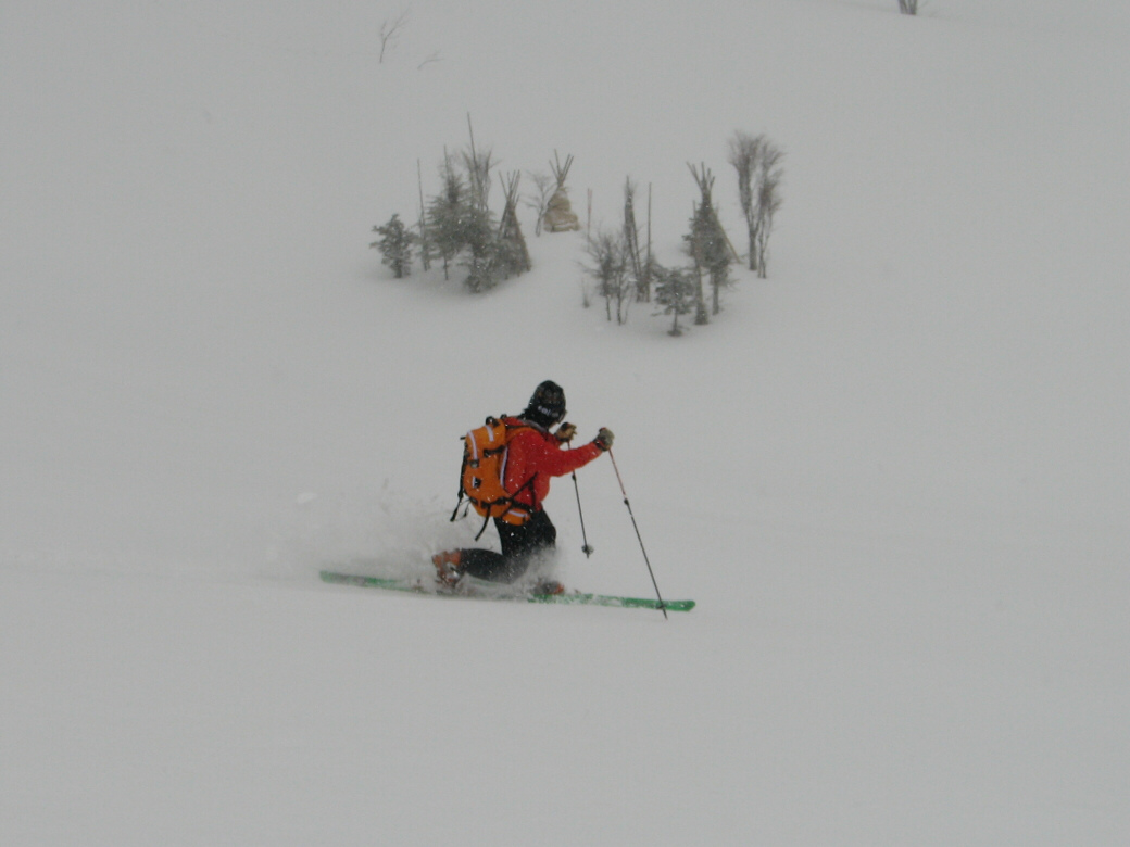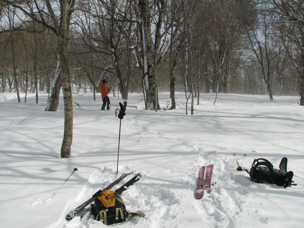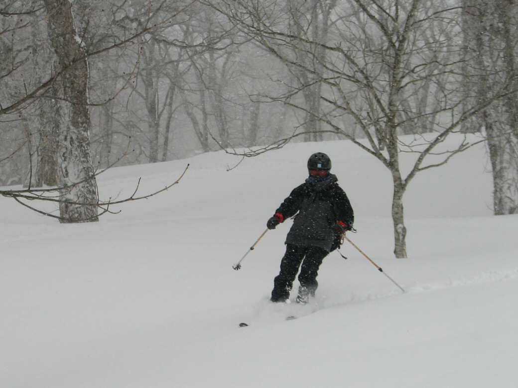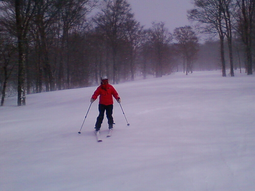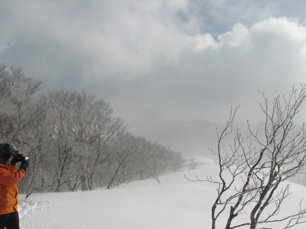 100%自然なスロープで滑ります。当然リフトも無し!自分の足で登ります。 ちょっと生憎な天気になってしまいましたが・・・ アバランチビーコンあれこれ 定期的にビーコンは使わないと、イザッてトキに使えません。 人工呼吸や心臓マッサージと一緒かなぁ? 人が死んじゃう!って時はどれくらい冷静さを残せるか?が大事です。 100%冷静ではいられませんから。 お昼を食べてると、雪になってきた! さっきまで晴れてたのにぃ・・・・ で!滑ります。 思いもかけず。新雪です。 新雪のすぐ下はグシャグシャの雪が! なんというか・・・・手ごわい雪ってやつですね! 登ります! 今日はツボ足です。 シールは・・・・メンドクサイです。 そしてまた滑る。 合計3本滑って、ゲレンデにスタスタ歩いて終了です。 写真には無いんですけど・・・・午前中はツリーで、アイスバーン!という本気モードのシチェーションもアリ!で、けっこう内容濃かったと思いますよ。