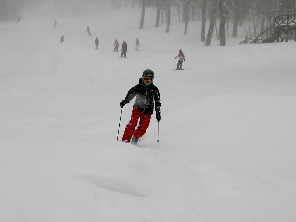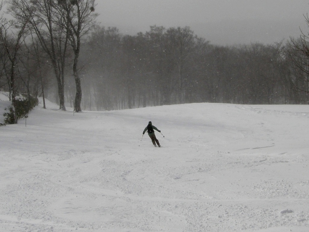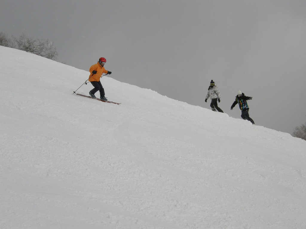 雪が降ったり晴れたりとめまぐるしく天候が変化はしたけど、リフトが止まる事も道路が閉鎖される事もなく、いつものとおりの宿泊レッスンです。 但し、気温がいつも異常に低くて・・ロープウェイでゲレンデトップに上がったら、なんとマイナス17℃(笑 15.16日の最高気温もマイナスでした! 今回は、さみしい事にお客さんは一人だけ! 毎年来て頂いてる常連さんです。 ビギナーでは無いので今回はいつもよりテクニカルな内容の濃いレッスンとなりました。 めったに使わないテクニカルバーンをメインに講習です。 一夜明けたら車に雪が! 夜半過ぎに降雪も! 16日朝、ゲレンデスタッフが雪かきに追われて、リフトの開始が遅れちゃってます(悲 蓼科山を眺めながら待ってます。 この後、ラッキーな事にリフト一番乗りできちゃいました!なので最初の一本は全開でフリーラン(喜 夕べの雪のおかげで、ノートラックなパウダーが! そしてラスト1本もテクニカルバーンで! 今回スキーのトップを落として直滑降に近づけるように練習しました。 スピードにさえなれちゃえば、足に負担がかかりにくくて快適に滑れるようになります。 今回はより中上級向けのレッスンでした! |