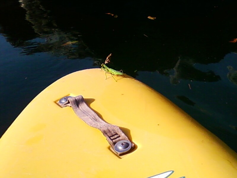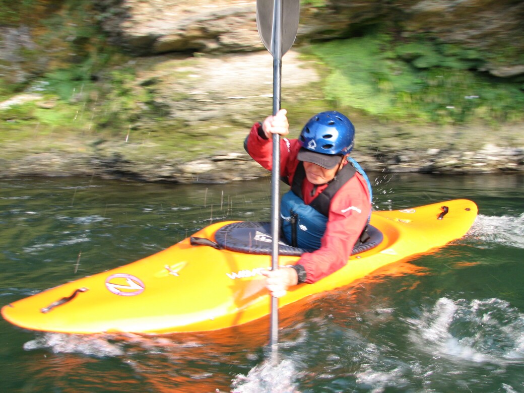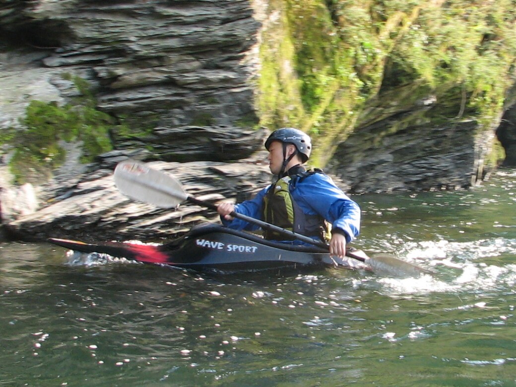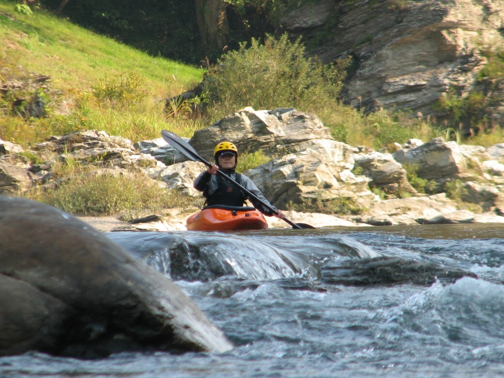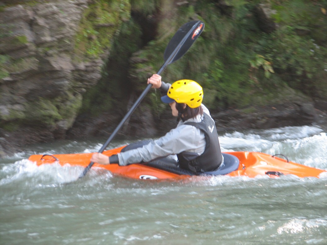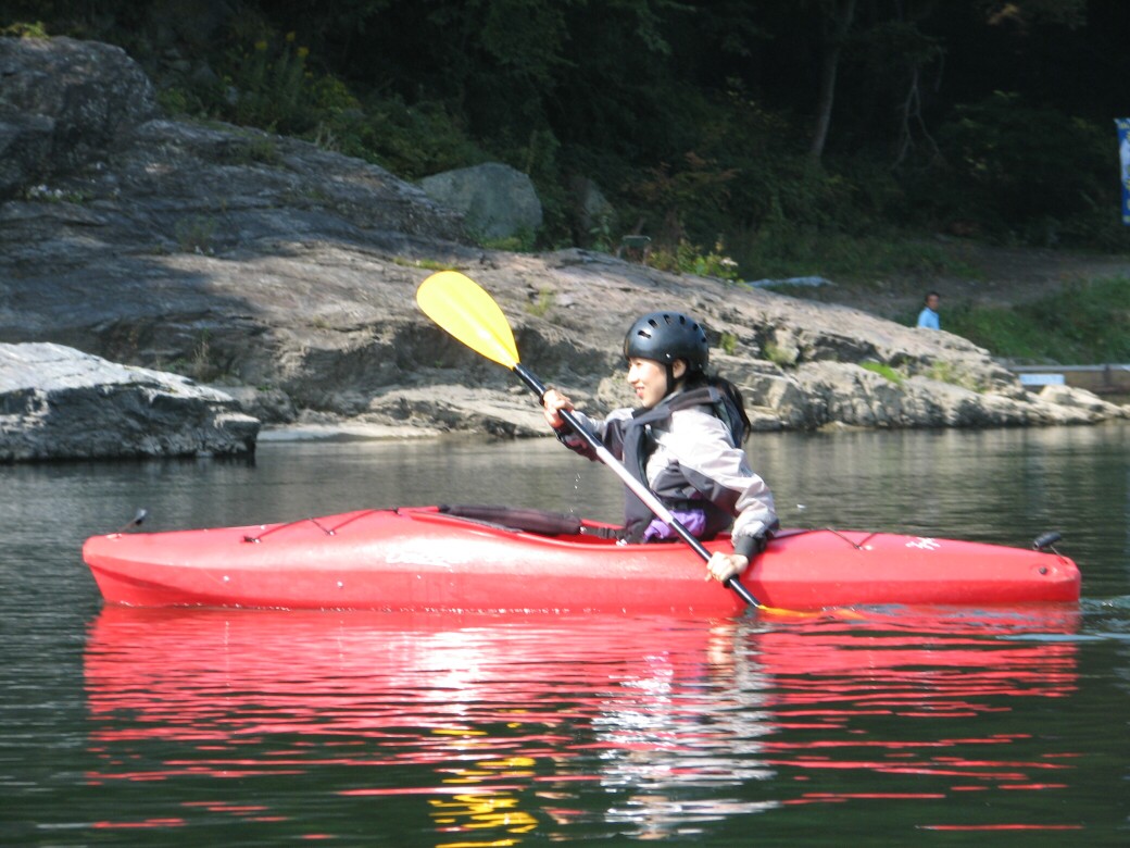 愛犬用のライフベスト買っちゃったので、ゼヒ下りたいって・・・気持ちはわかるので今回は特別ですよ(笑 どなたでも愛犬と一緒にお受けしてるわけではないので・・・ こちらはつれてこられた(笑お友達 なかなかどーして、いい漕ぎっぷりでした。 午前はと瀞場で基本を覆えてもらいます 午後からいよいよダウンリバー ちなみにここからですから・・・ 上流の激しいところは下ってません 今日も川の透明度が高いです。 のんびり下ります。 途中、ちょーっと流れの速いところもありますが、少しはスリルもないと寂しいですから(笑 紅葉が、ちょっと始まりかけてます。 シートの後ろにすっぽり収まって一緒に下りました。 カヌー犬誕生?