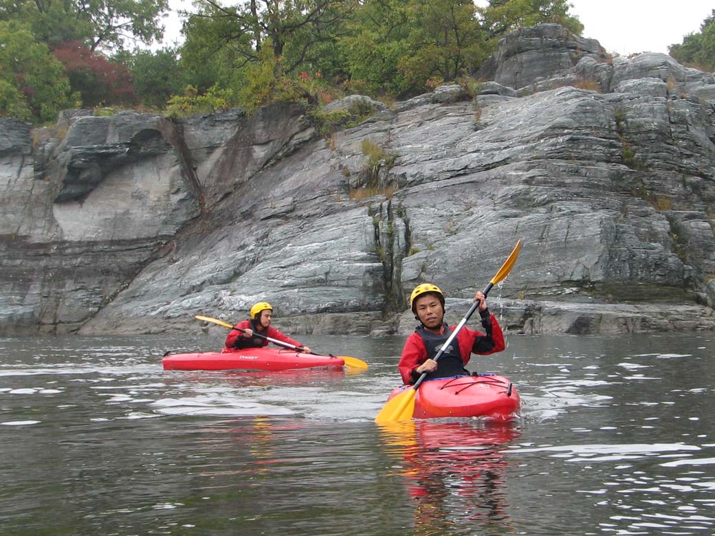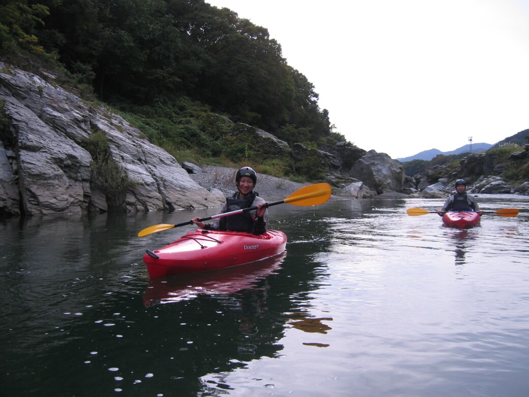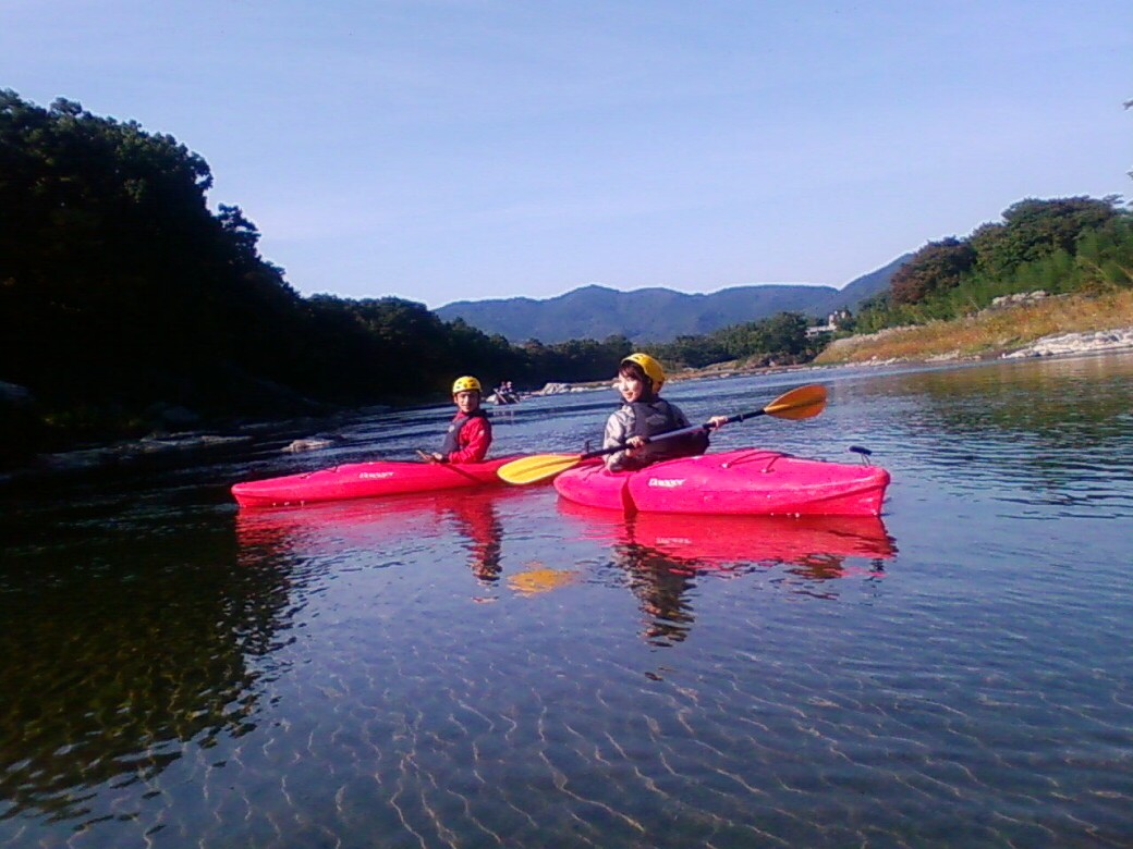 カヤックスクール ベーシック2~4 体験カヤック 共にAM9時まで受付中 今日は、川にだ~れも居ない、ラフトも全く下ってこない!まだ10月に入ったばかりなのに! |