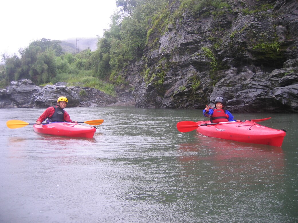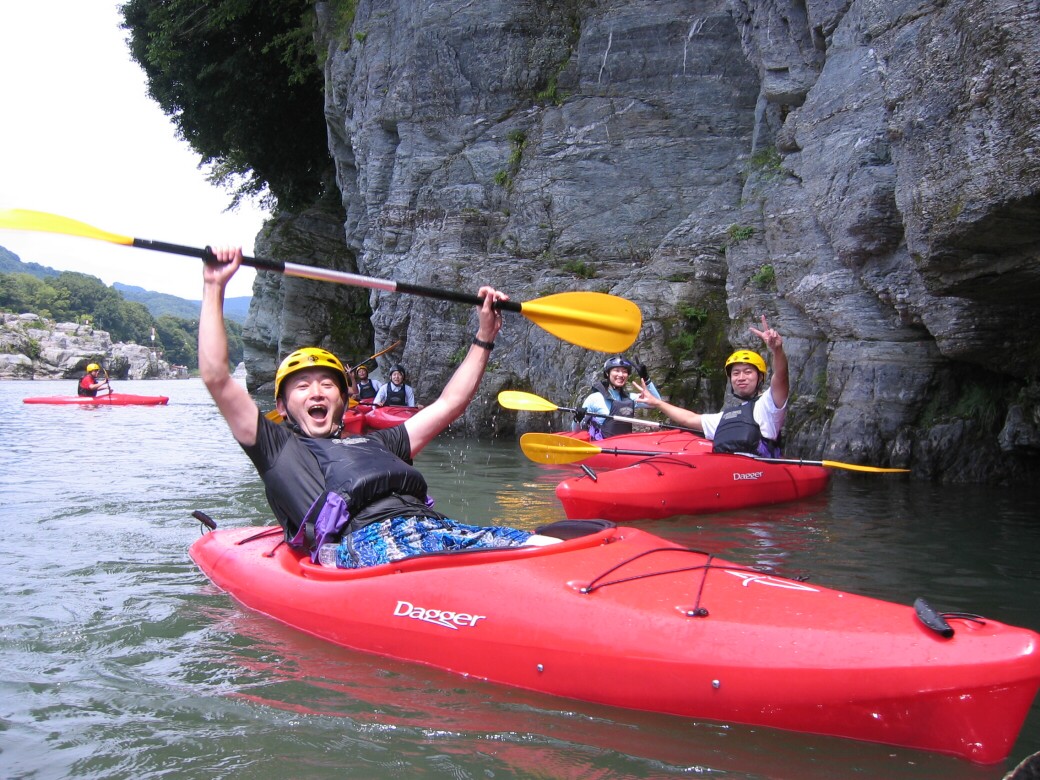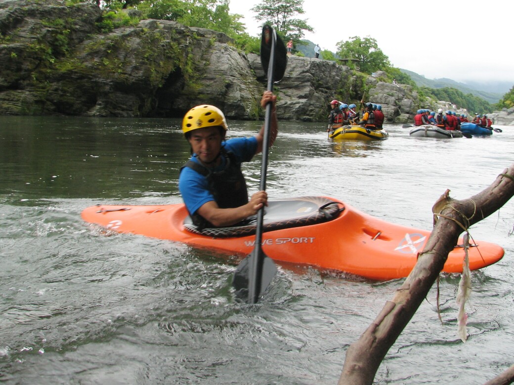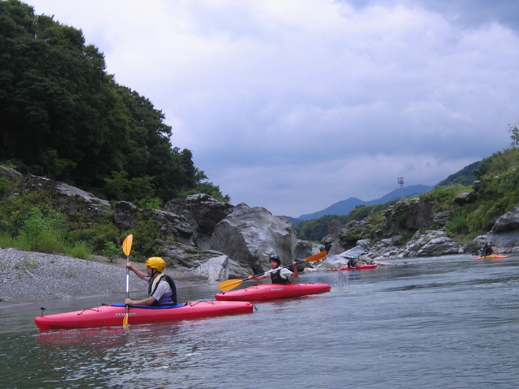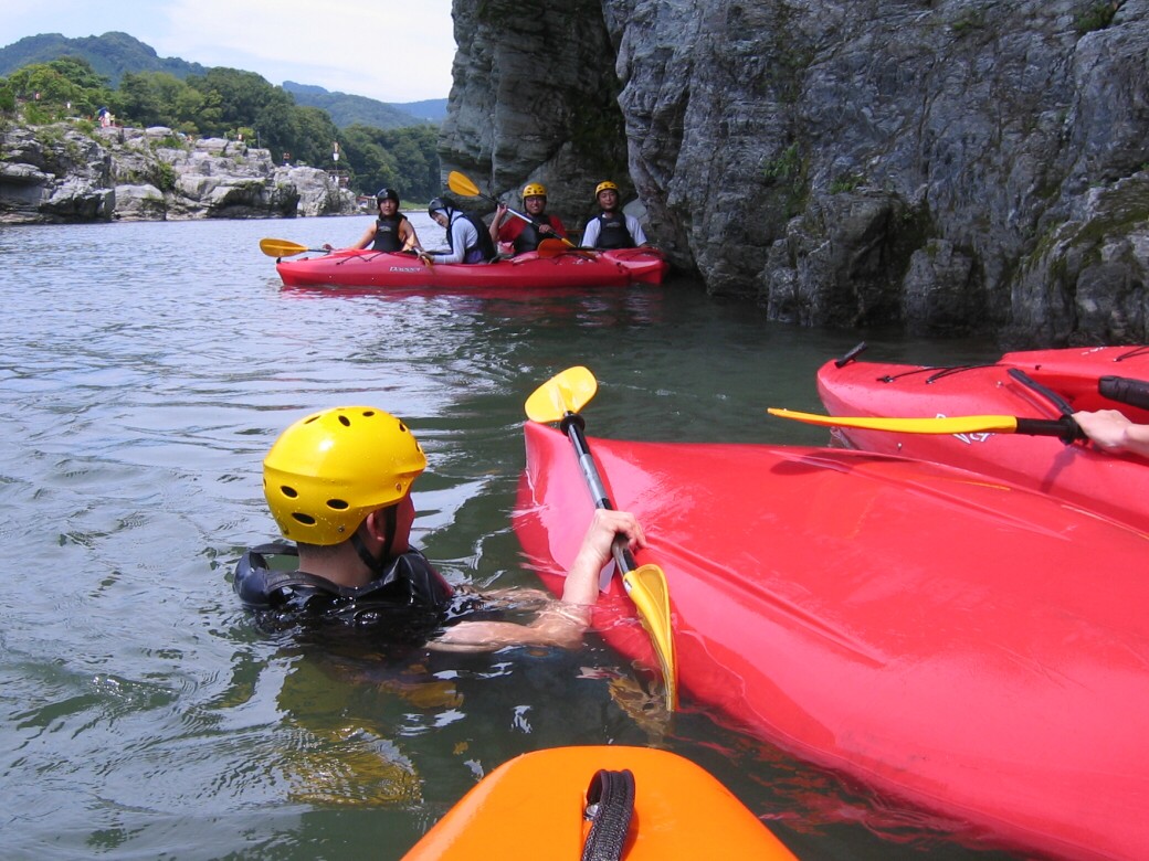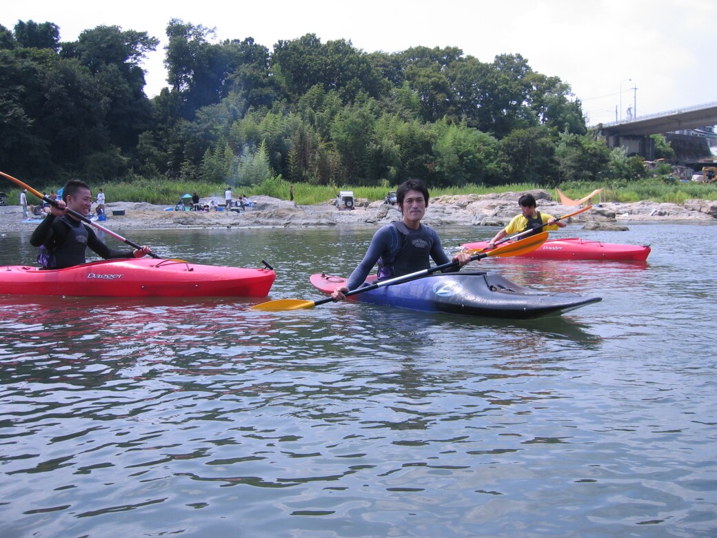 やっぱり手っ取り早く楽しめた方がいいもんなぁ で、今日は経験者の方が未経験の方を連れてきていただきました。 カヤックって、どうしてもレベルによって、楽しむ場所が変わっちゃうので、なかなか友達を誘いにくかったりするので、どちらもそこそこ楽しめるプログラムを考えたいなぁって思います。 午前中はカヤックになれてね 午後は川を下ります ちょっとドキドキの時間ですねぇ で!川下りスタート 思い起こせば20年前 僕も初めて川をくだった時の事って、今でもはっきり覆えてるなぁ わけもわからず波に突進していくのって衝撃だったですよ(笑 で、荒川を下ると湖になっちゃいます。 ホントは荒川なんですけどね! せき止められて、名前は玉淀湖 |