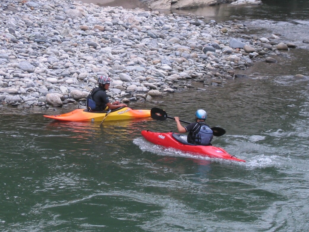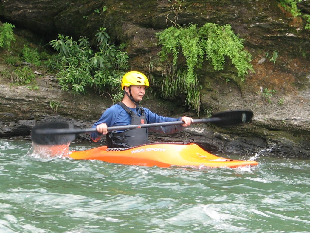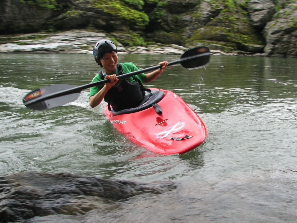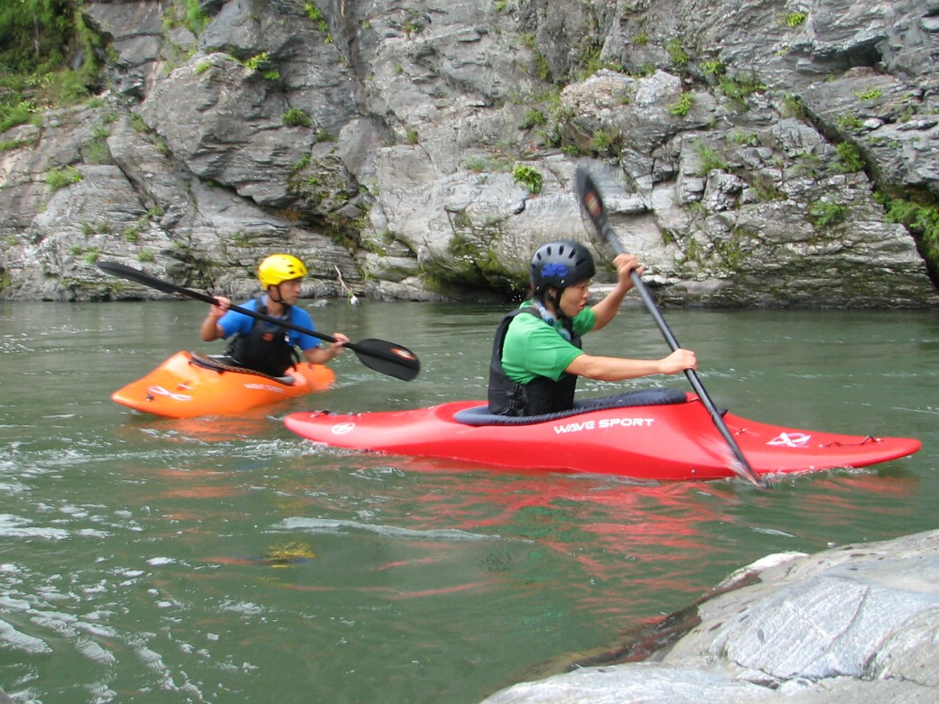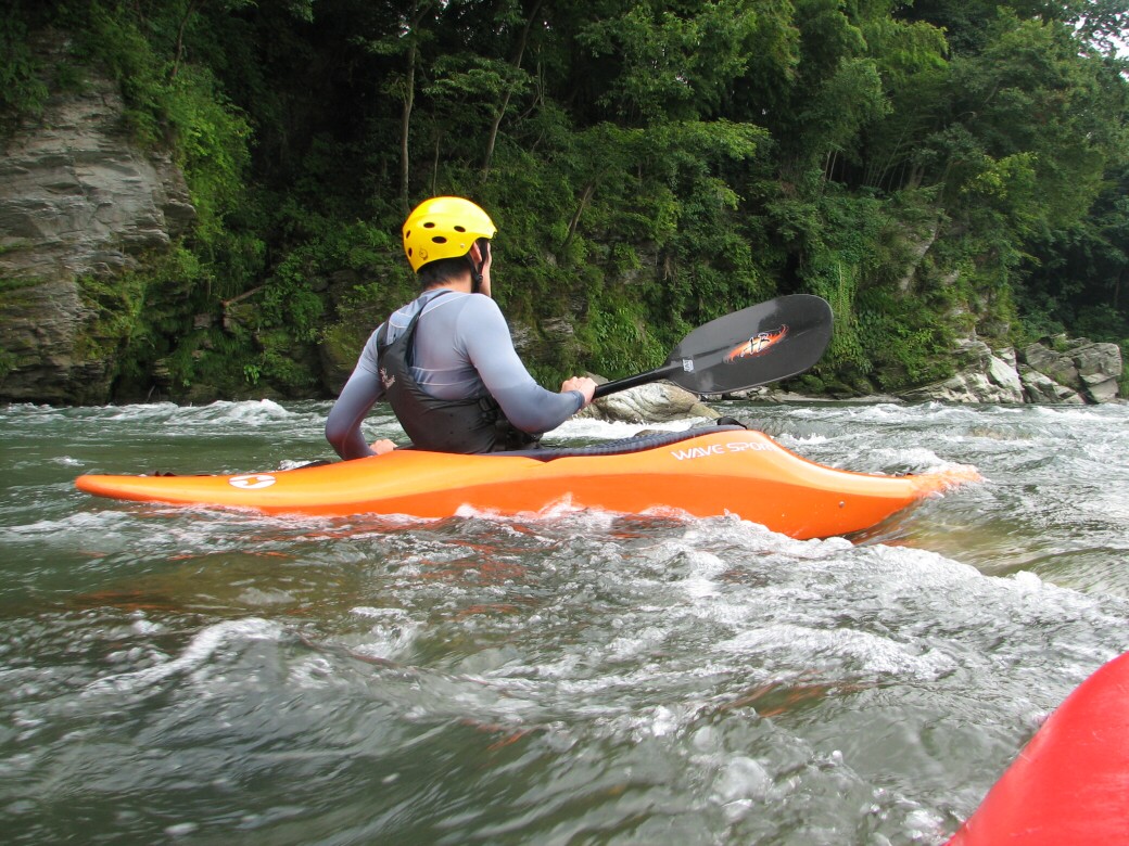 朝玉淀ダムを見たら、湖はマッ茶色になってて、こりゃー増えてるなぁーって思いながら長瀞に来てr見たら・・・ あれ?フツーだ!おまけに水量は昨日の増水前より下がってる!うーんなかなか読みきれませんねぇ 今日は岩畳前でのベーシック2 もっと濁ってると思ってたんだけどなぁ 前回のベーシック1から2ヶ月近く空いちゃったので、ちょっと前半はお悩みモードに入っちゃいましたが、後半は大胆に傾けて漕げるようになりましたねぇ カヤックの航跡を見るとカービングしてるのが判る! 彼は本来ならベーシック3なので、ちょっと難度の高いテクニックも使います。 ロールもずいぶん良くなったよ~