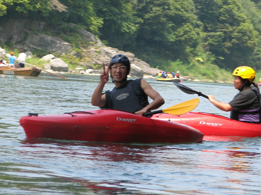Tシャツやけを何とかしようと、タンクトップで漕いでたら・・・肩が!イタイ(笑 長瀞では、ベーシック2 直前まで、他のプログラムが入ってたのが直前キャンセルで(悲、急遽通常講習に変わりました。 お客さんは常連のご夫婦で、これまた直前申込み! ホント僕のところは直前だらけ(笑 本日長瀞で、水難事故が3件 1件は僕らのすぐ近くで!目撃はしてないんだけど。 川で泳ぐのも飛び込んで遊ぶのもいいけど、皆もう少し川のこと学べるといいのになぁ・・・ 警察の河川パトロールから注意を受けた、その数分後の事故だったらしくて、パトロールの警官としては、やるせないだろうなぁ・・・ 水の上で仕事をしてる身としては、川の事を学べる機会を作れたらいいなぁって思います。