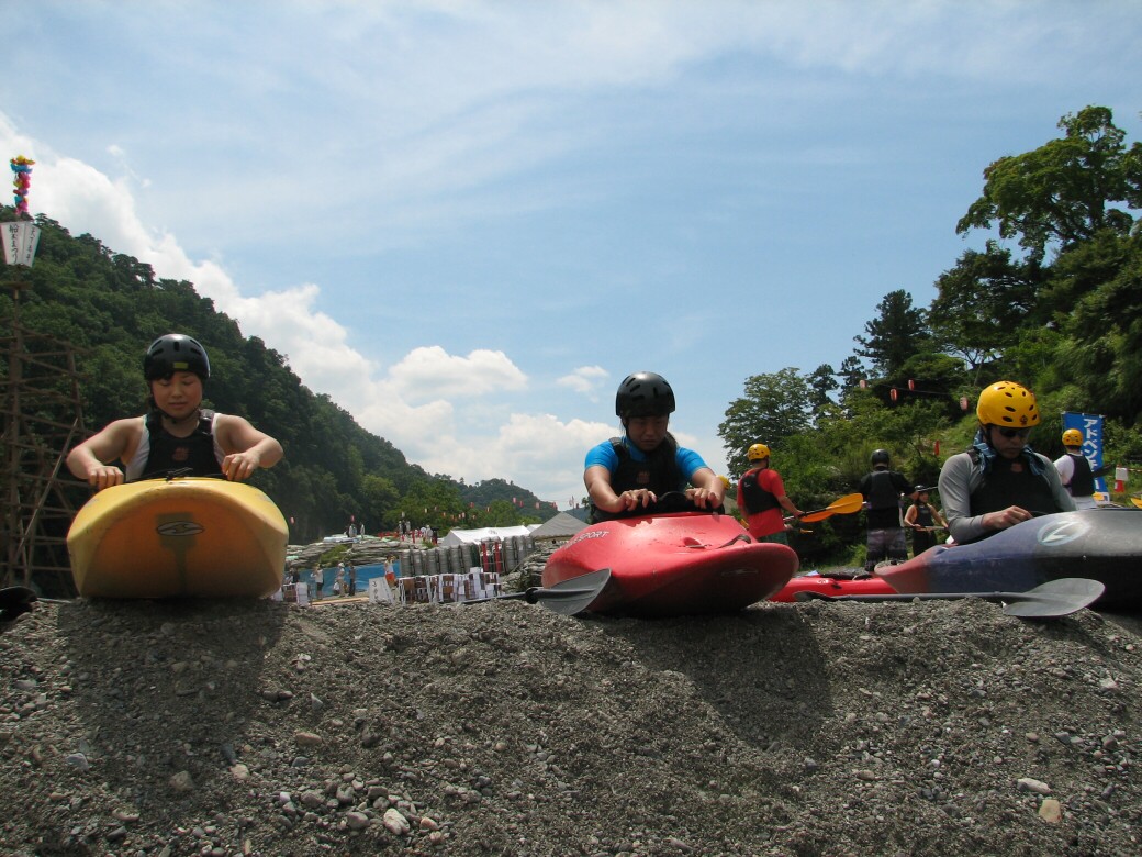 我々には、一年で一番過酷な時期となります。 長瀞っていう土地柄(一応観光地)思い立ったが何とやらで、直前申込みが殺到してくるんですねぇ。 常連の皆さん!お願いだから、皆さんだけは、早めに電話下さい!さもないと、体験コースでスケジュール埋めちゃいますから(笑 なんてことはさておいて、今日はベーシック2 今はまだ、静かな荒川ですが! 来週は人がイッパイ来ますよぉ 数日前の夕立ちでまっ茶色に濁った水も涼しげな色に変わってきました! この季節は、午後になると水温がググーッと上がってくるので、気持ちいいのは、やっぱり午前中ですねぇ ちょっとお知らせ 明日は当日受付はありません!ベーシック2のみ数名参加できます。(今のうちですよ!)