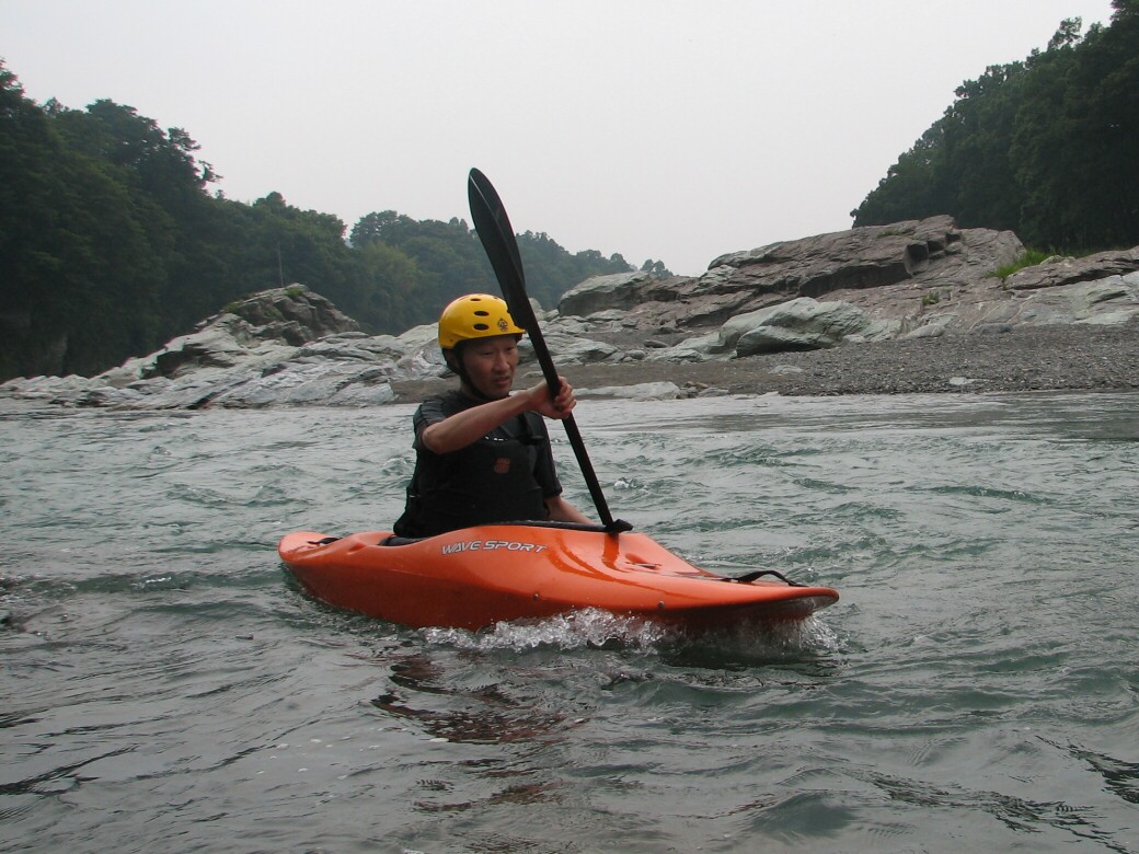 と、いう事で、仲良しのサンバーストアドべンチャーズと、水上~月夜野間で合同ダウンリバートレーニングをしてきました。 昨日までの薄ら寒い天気から、バッチリ晴れて、ダウンリバー日和になりました。 堰堤越え 滑り台ですね! 今回この川を始めて下る赤澤選手 僕がネオプレーンのロングパンツをはいてたら、驚かれました(笑 だって雪解け水なんだもん!いつものカッコだと、腰が冷えちゃうよ! 今回彼には色々学んでもらえた事でしょう 久しぶりです。カヤックでここを下るのは ラフトでは毎年下ってたんだけど・・・ カヤックで下るのって7~8年ぶりかも! 視界が低いので迫力あるよなぁ 途中 お手頃サーフスポットで遊びます。 写真には取れなかったけど、長瀞ではありえないでっかい波が山ほどあって、久々に感動しちゃいました(笑 久しぶりにダウンリバーを楽しんじゃいました。 また来年もこよーっと |