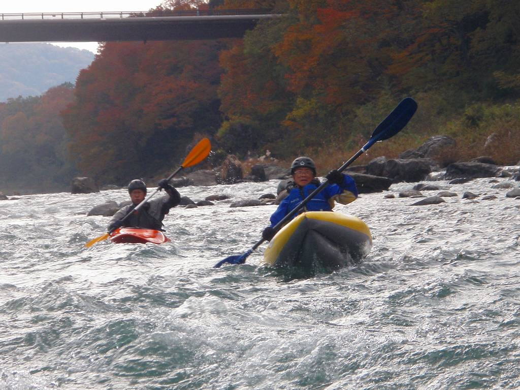 × [PR]上記の広告は3ヶ月以上新規記事投稿のないブログに表示されています。新しい記事を書く事で広告が消えます。 毎年恒例の紅葉ツアー 毎年ここで紅葉してもらえるかが気になる長瀞でしたが・・・ 今年はバッチリ紅葉ツアーになりました! 午前は天気も良くて、快適な川下りのスタートです。 先週から、川がきれいです。なんだか長瀞じゃないみたいな水の色(笑 増水の後水温が上がってこないので、きれいな状態が保たれてます。 高砂橋の下が、このところいい感じのポイントに戻って来ました。 スラ艇でもバウがヒットしないぐらい深くなってます。(カーボンのカヤックはやめたほうが良いけど笑 なので、ちょっとここでカヤックを立てて遊んでみました。 ダウンリバーボートでも十分楽しいですよ! 靴なしの瀬を越えると、いよいよ後半に入ります。 ちょっと雲が出てきて日が差さなくなってきて、更におなかも空いてきて(笑 みんなのペースは徐々に上がってきます。 そして、樋口のキャンプ村でゴールです。 今回サンバーストアドベンチャーズの協力で、バスで戻ります。 カヤック6艇プラスダッキー 積めるもんだなぁ(笑 |