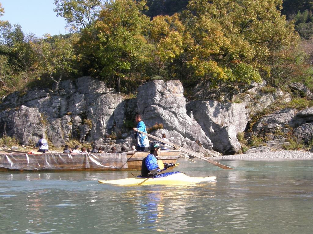 台風の影響で、今週末は営業が危ぶまれたライン下りも、何とか営業再開してました。
