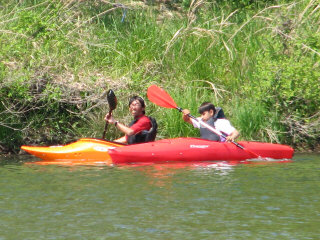 今日は、かわせみ川原も大混雑!です。うちのお客さんは・・・・・さみしいもんですが! ファミリーで川原に遊びに来てた一家に、参加していただきました。 特別サービス! 2種類のカヤック乗り比べ! 数年ぶりのかわせみ川原 パドラーが少なくなりましたねー!昔はうじゃうじゃ居たのになー。 |